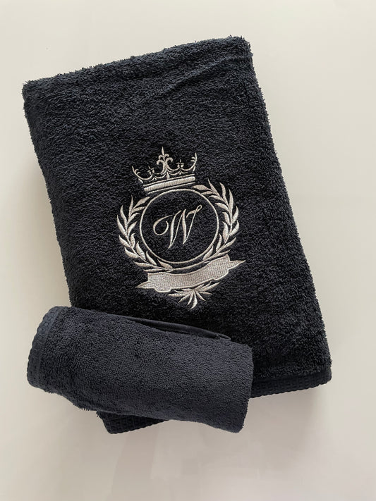 Black Bath towel set / Silver thread / Monogrammed Towels / Embroidered initials