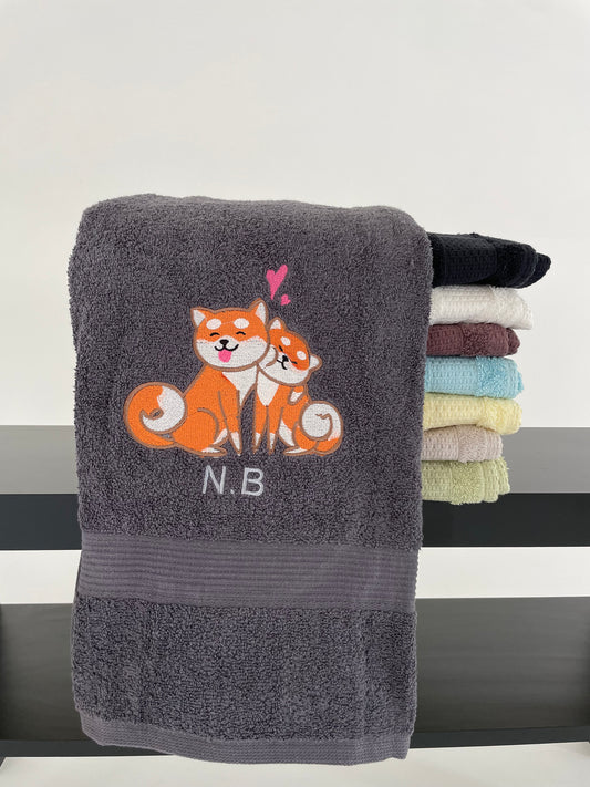 Towel Shiba - Set with しば いぬ illustration - Siba inu lover gift