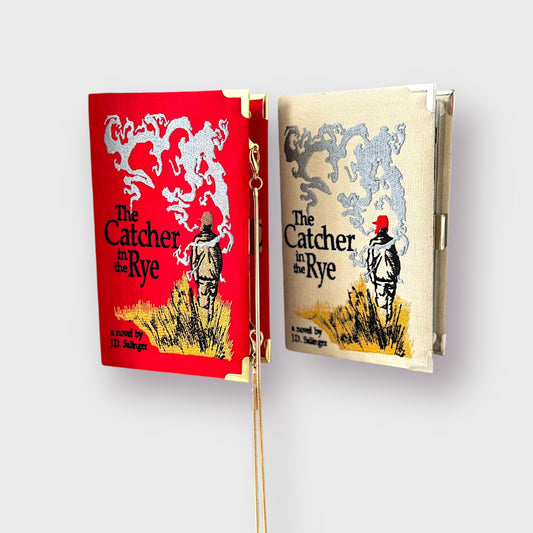 Embroidered Clutch - The Catcher in the Rye - red linen purse