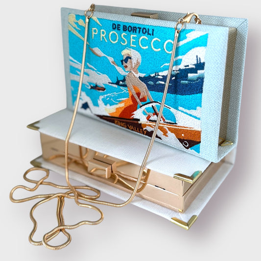Embroidered Clutch - Prosecco - blue purse