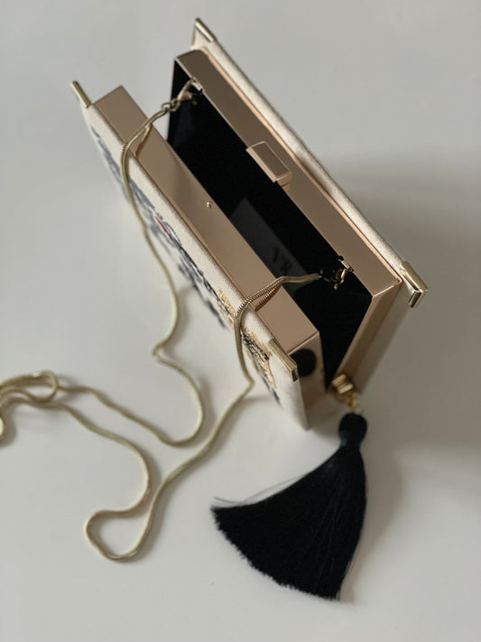 Embroidered Book Clutch - Pride and Prejudice - with tassel and chain