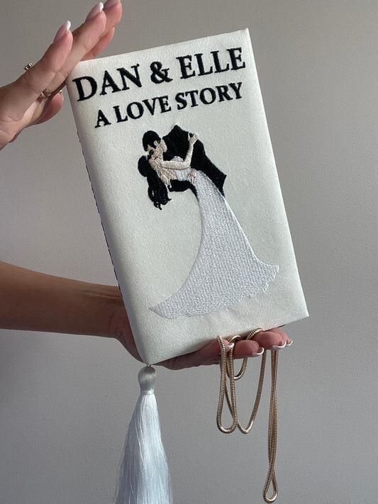 Ivory white wedding clutch book with personalized design