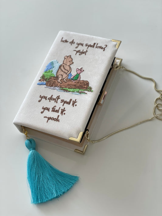 Ivory white clutch book with Winnie the Pooh