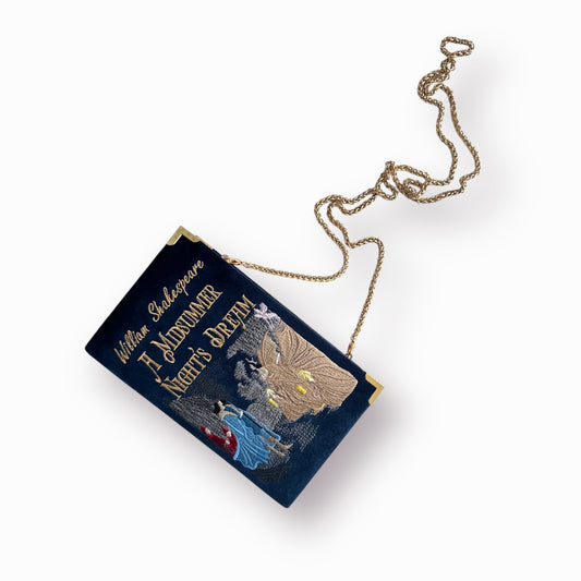 Embroidered Clutch - William Shakespeare - navy blue velvet purse