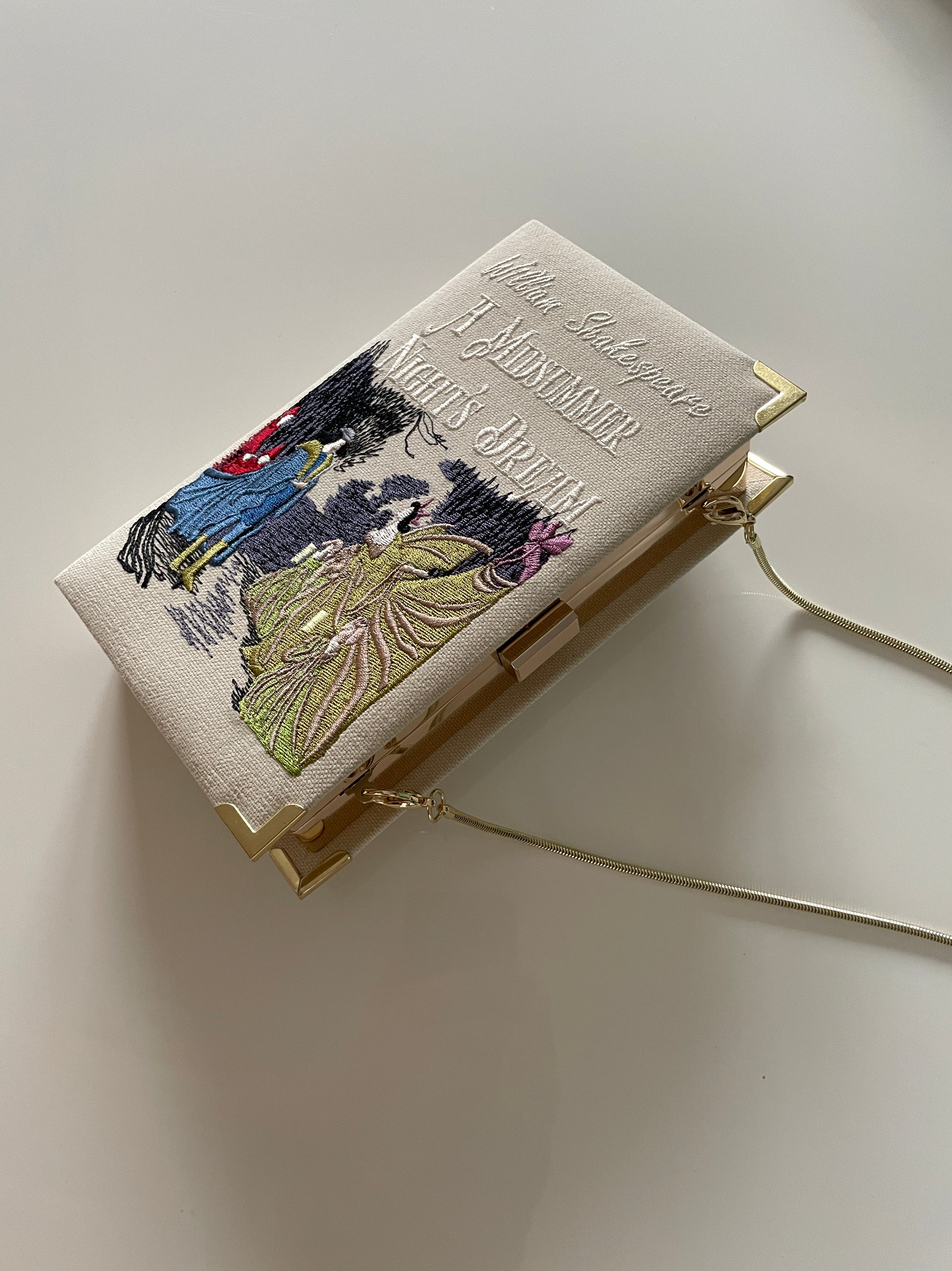 Embroidered book clutch - The Sun Also Rises - beige purse