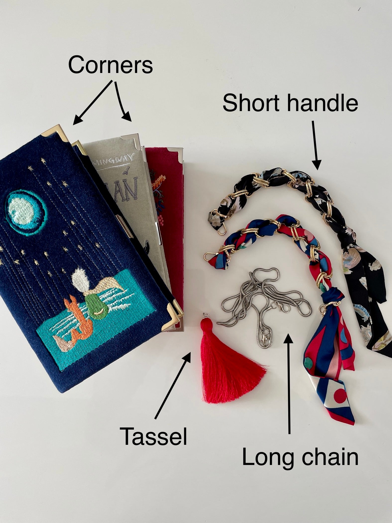 - Gold or silver, which goes with detachable tassel and chain as well (with or without gold corners, chain)