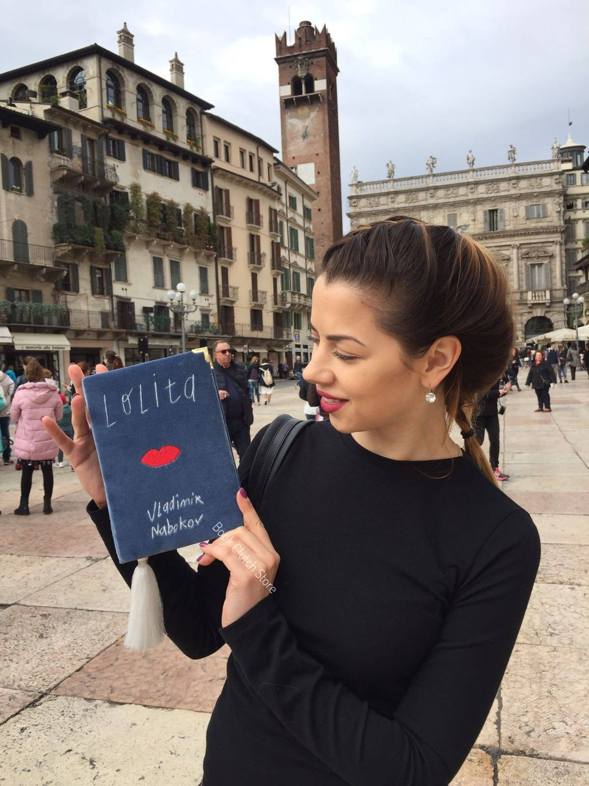 Book clutch purse - Lolita by Vladimir Nabokov - White velvet