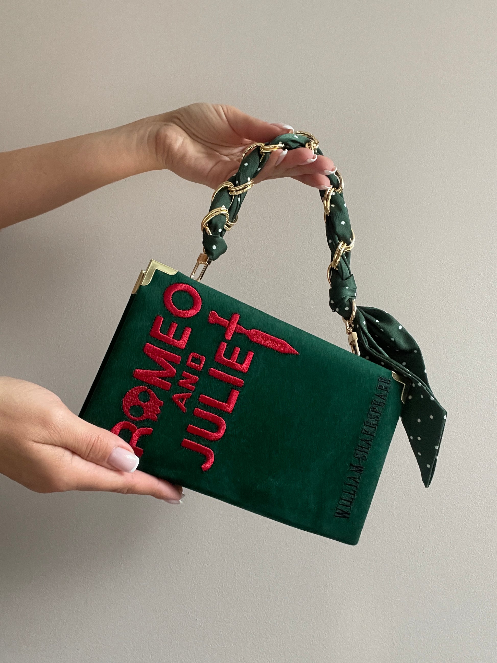 Romeo and Juliet handbag in a size 21 x 13 cm (8.3” x 5.1”).