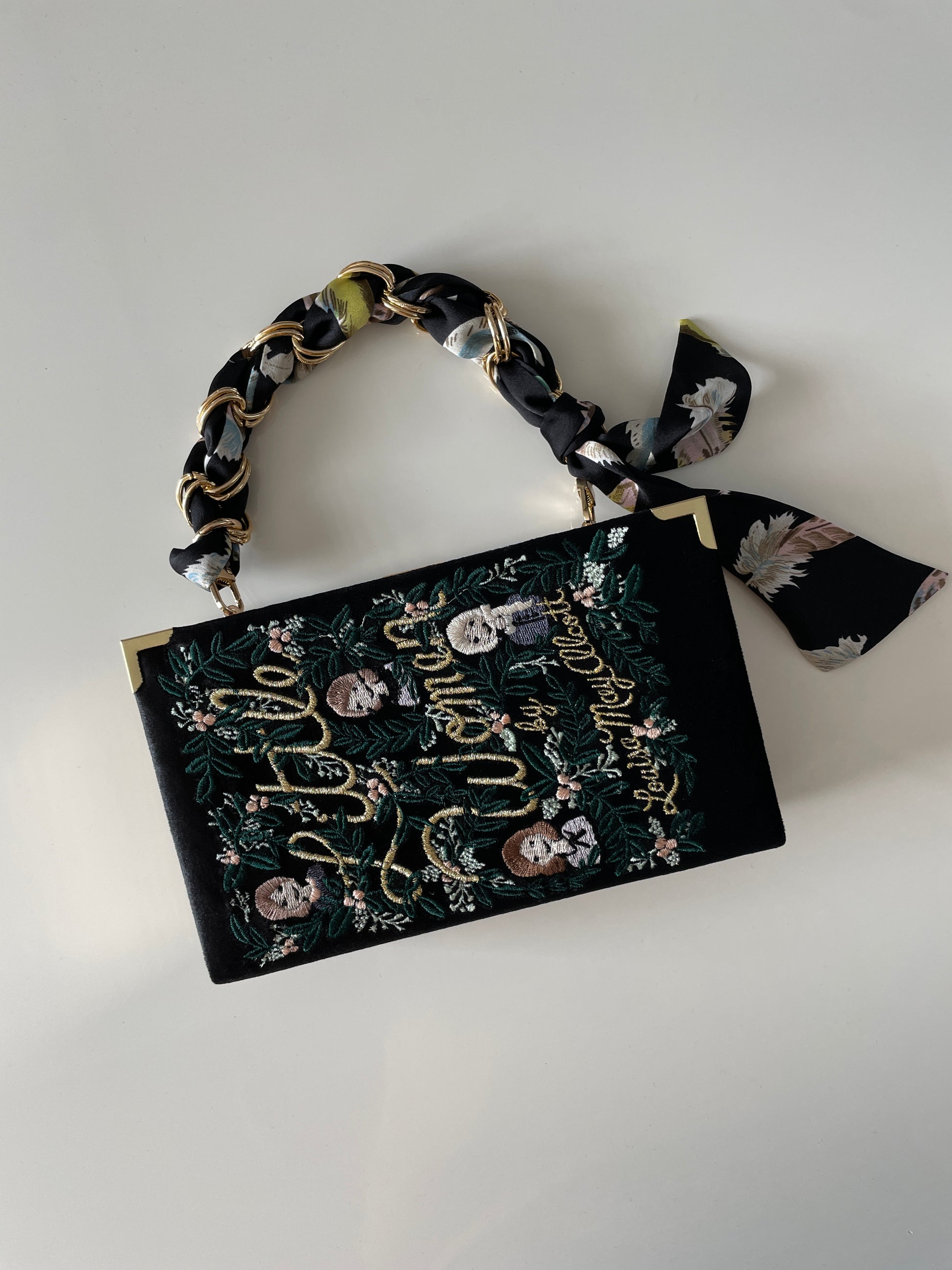 Embroidered book clutch - The Sun Also Rises - beige purse