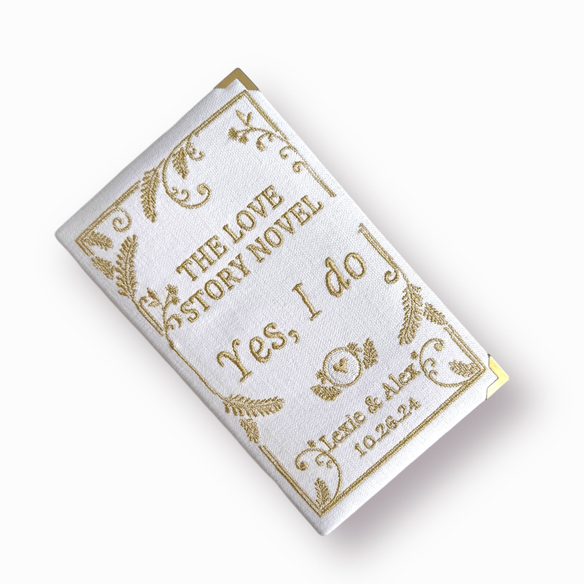 Embroidered book clutch - The Sun Also Rises - beige purse