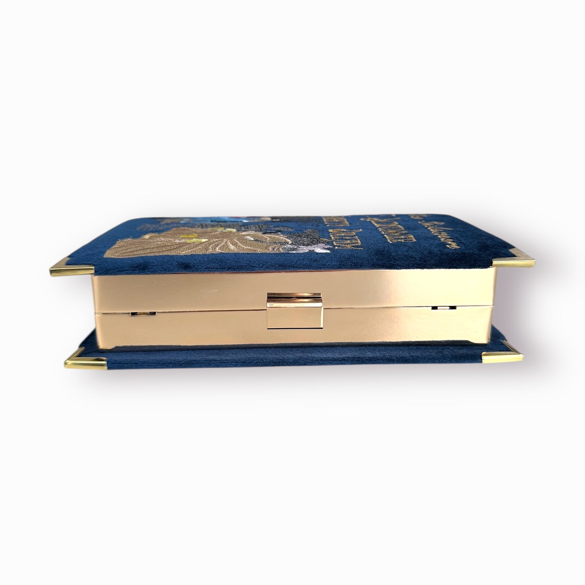 Embroidered clutch - Pride and Prejudice - 2 sided embroidery - navy blue purse