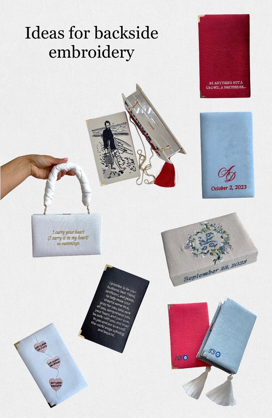 So it is not all options , also book clutch might be personalized according to your preferences : color, design, and of course the title you wish to carry with you ( please select Custom Order if you are interested in it or contact me).