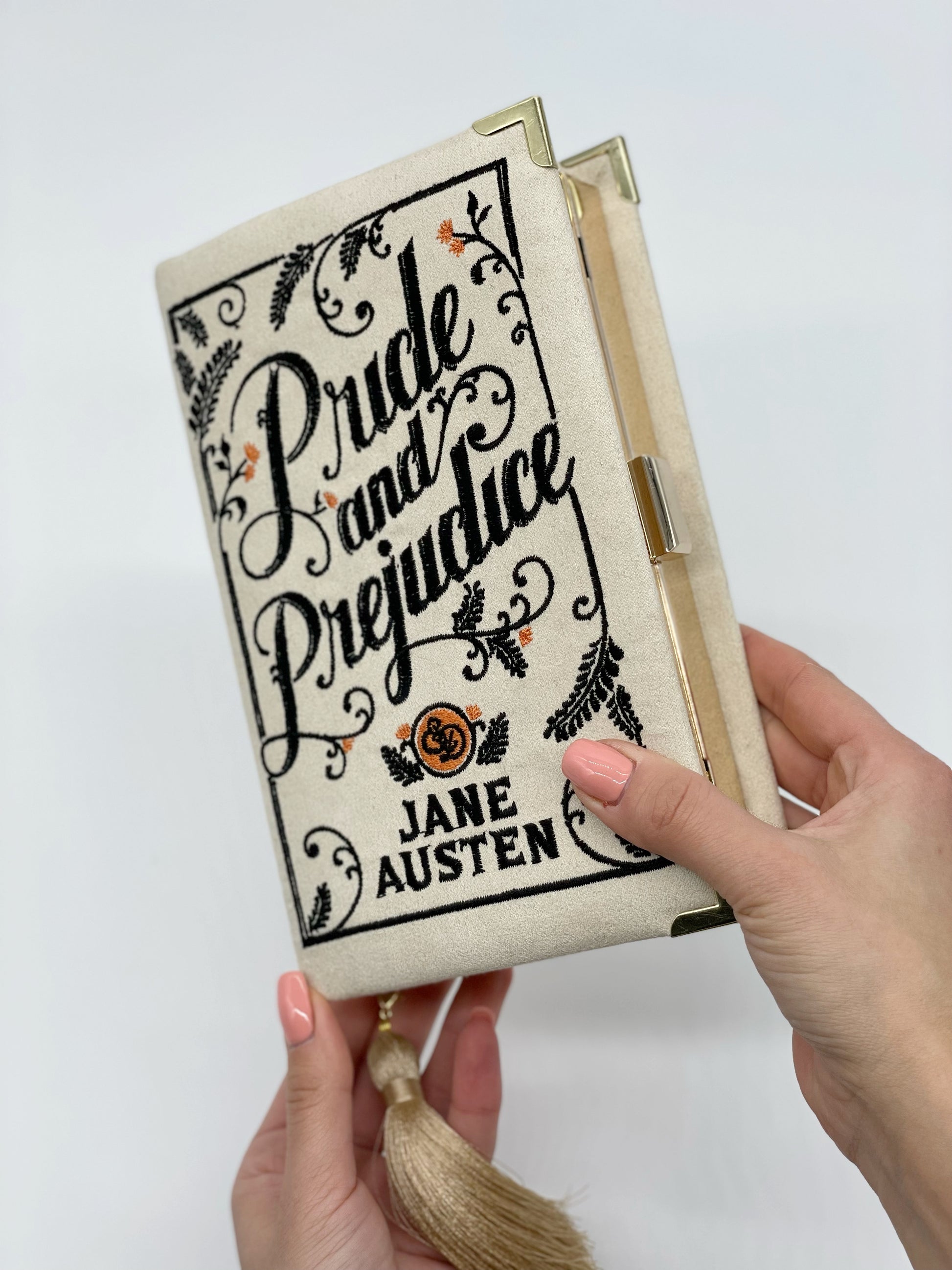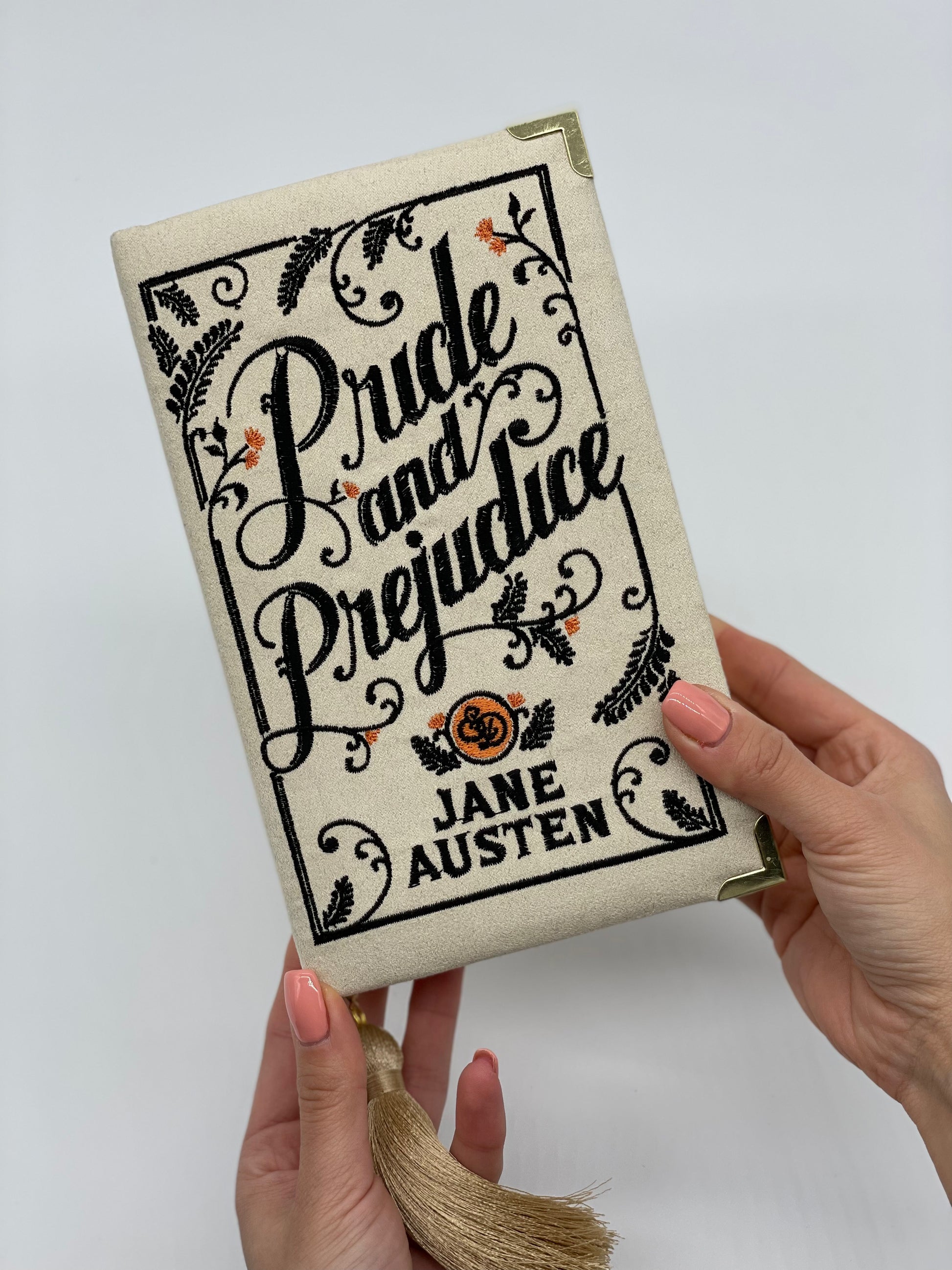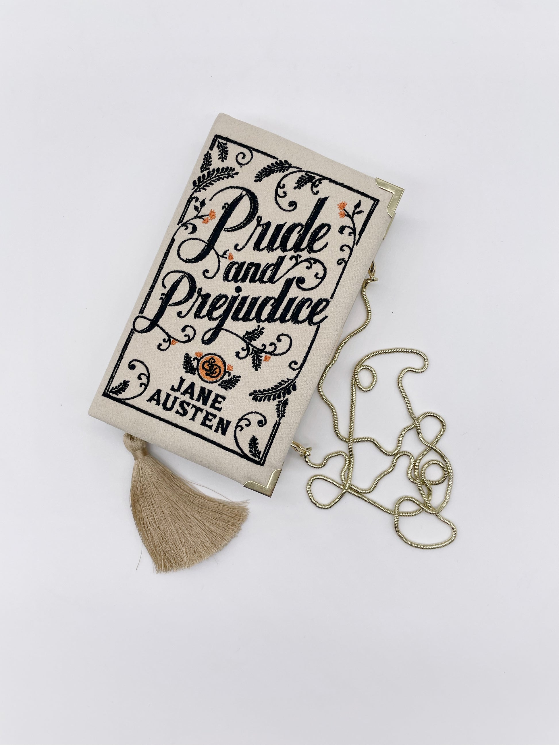 Embroidered Book Clutch - Pride and Prejudice - with tassel and chain