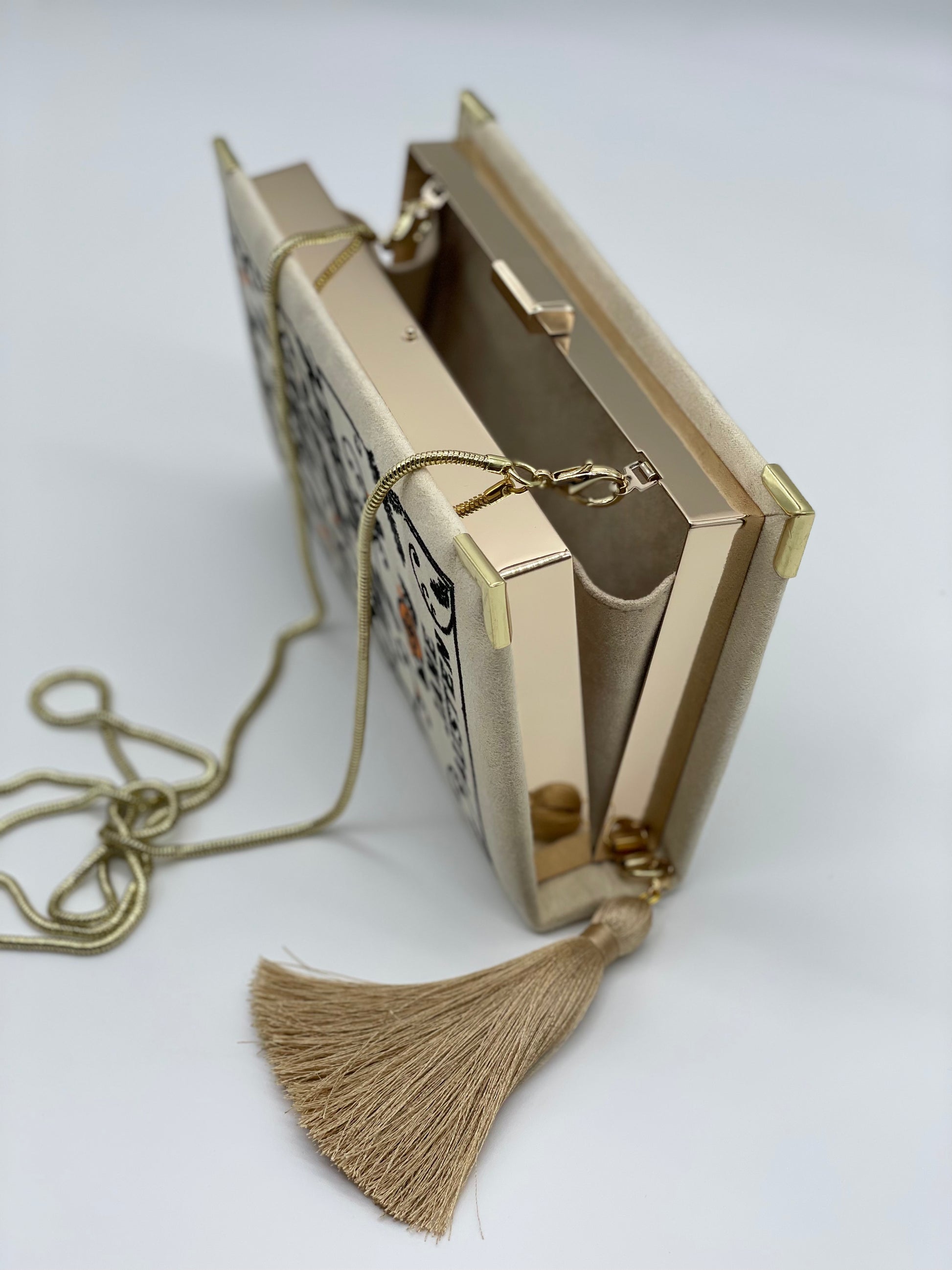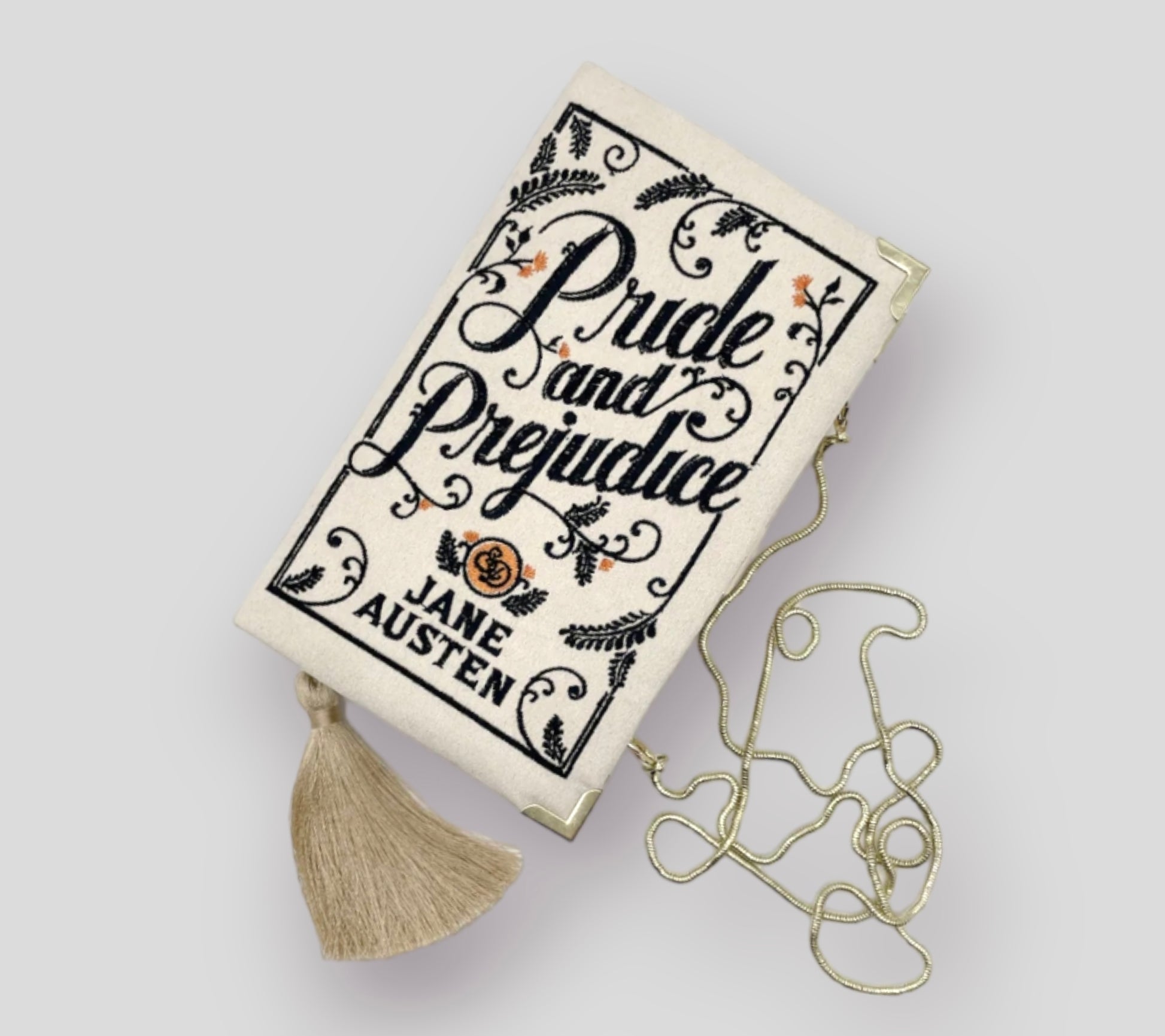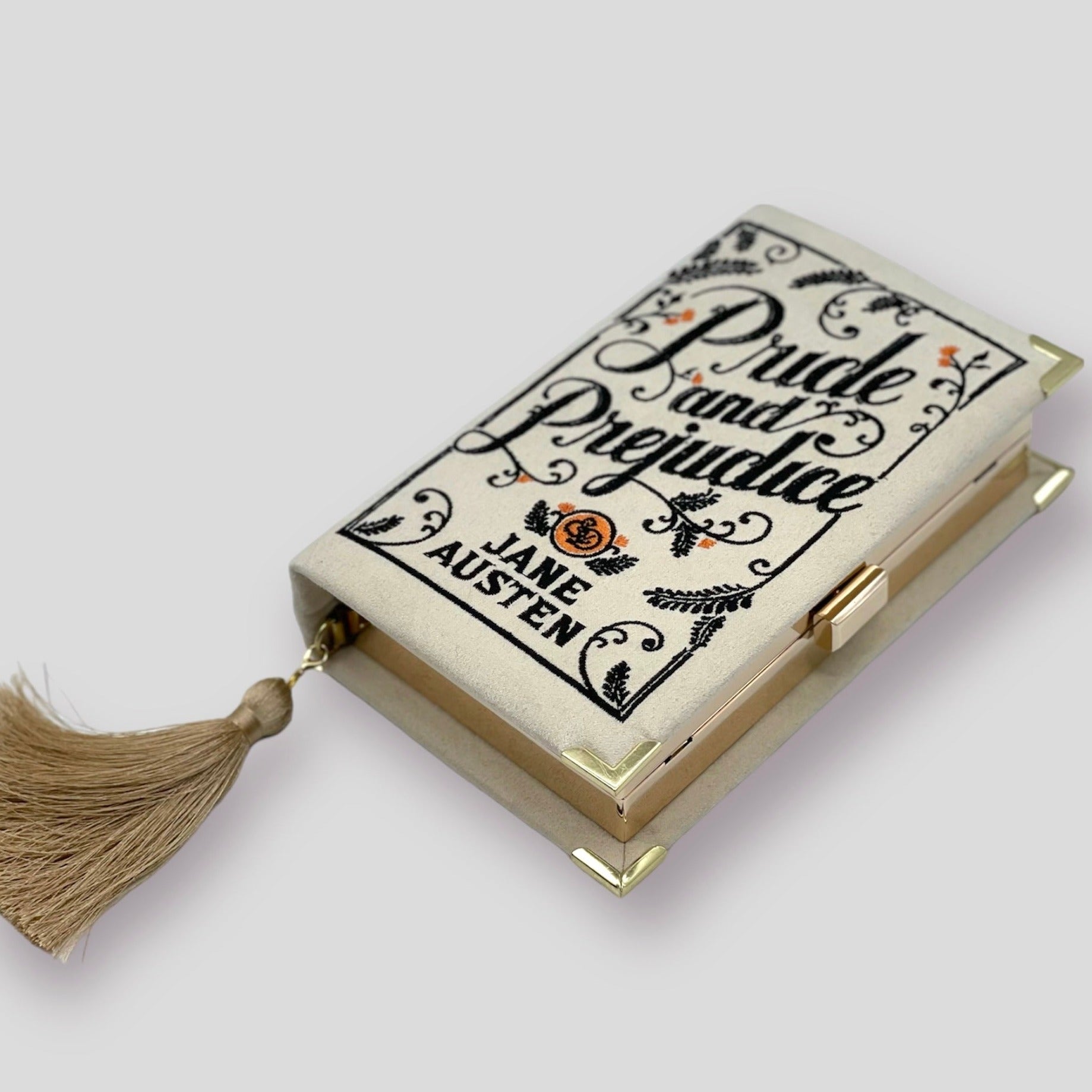 Embroidered Book Clutch - Pride and Prejudice - with tassel and chain