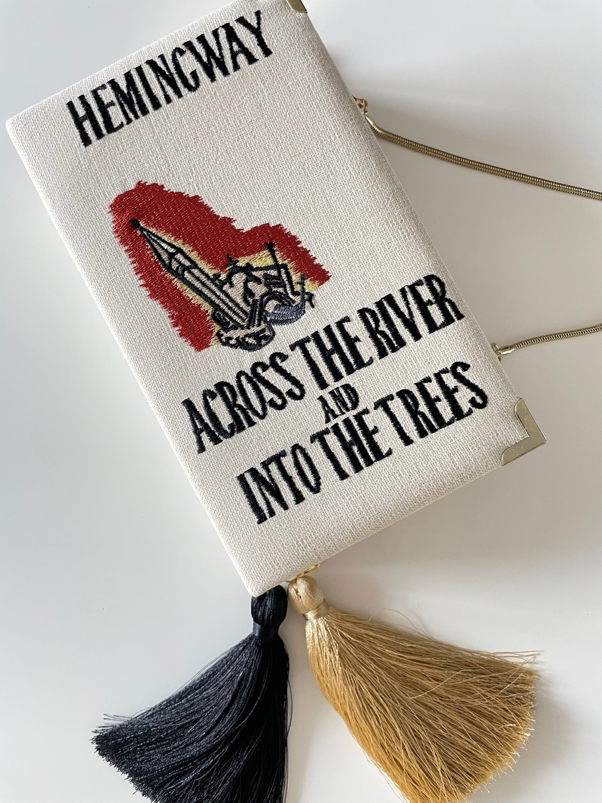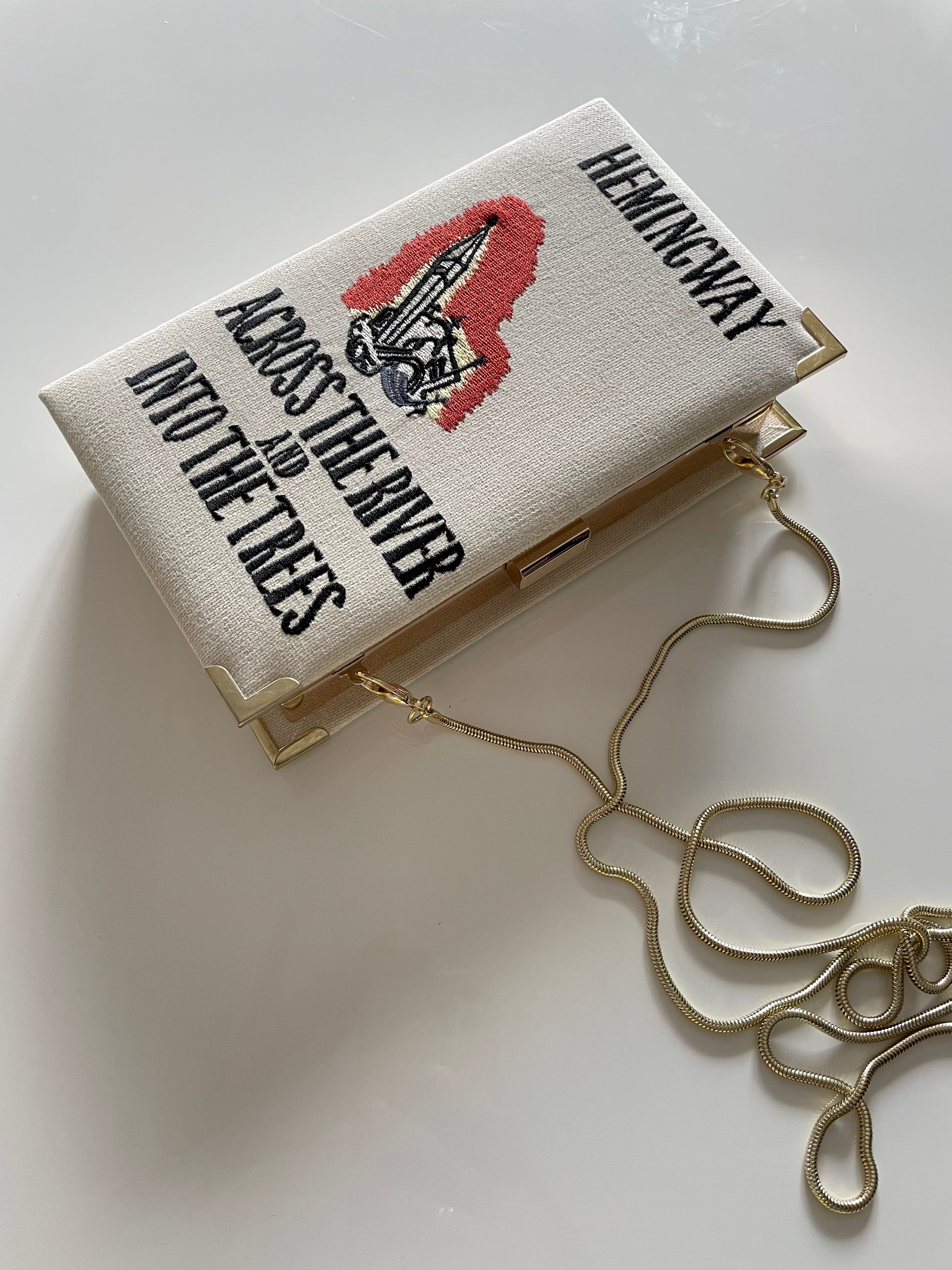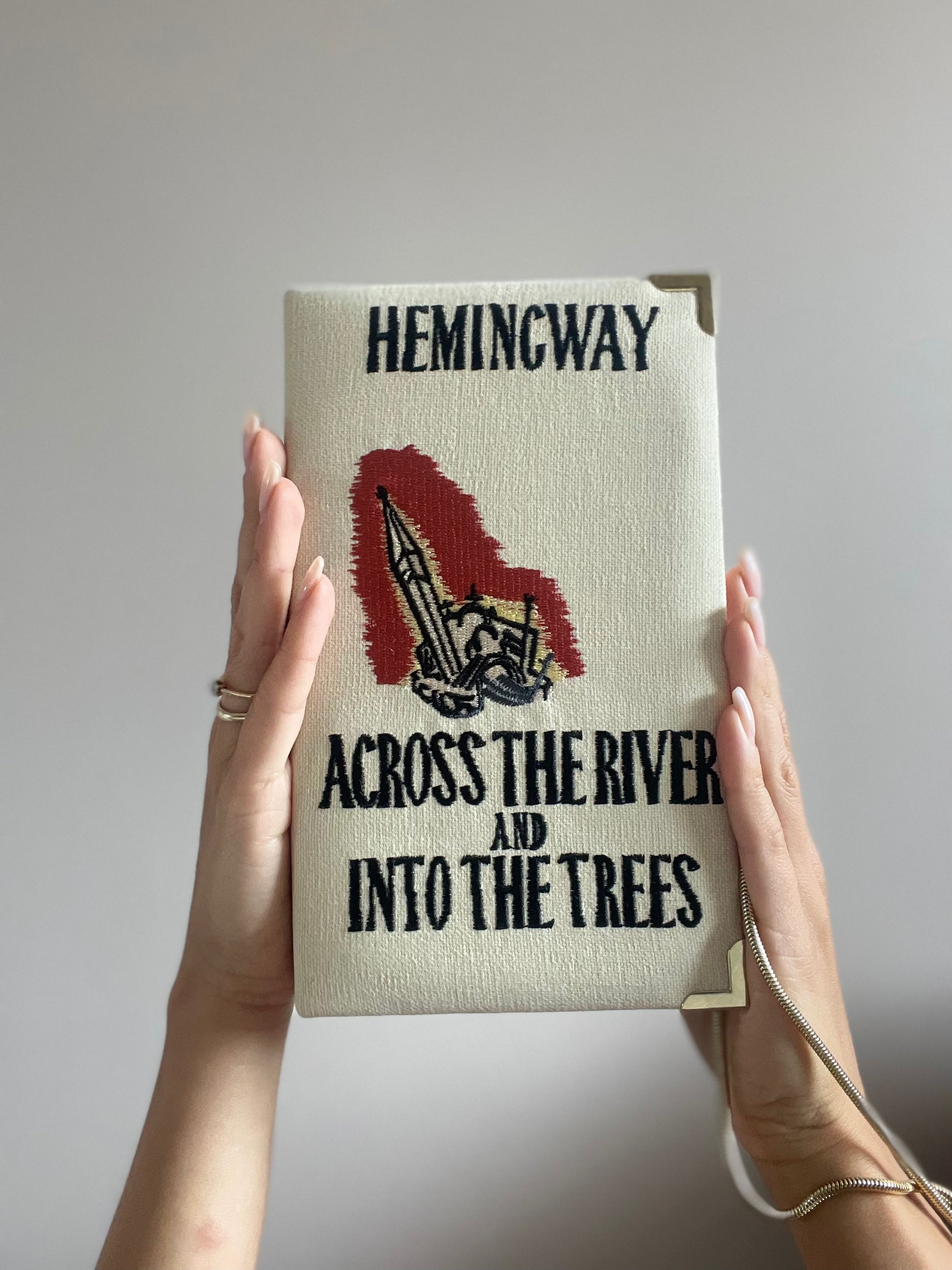 This is a custom listing of embroidered book bag-clutch of Ernest Hemingway. Can be personalized to your preferences.