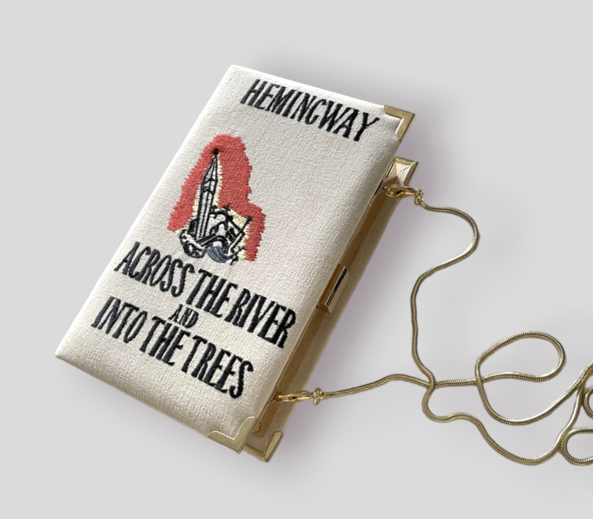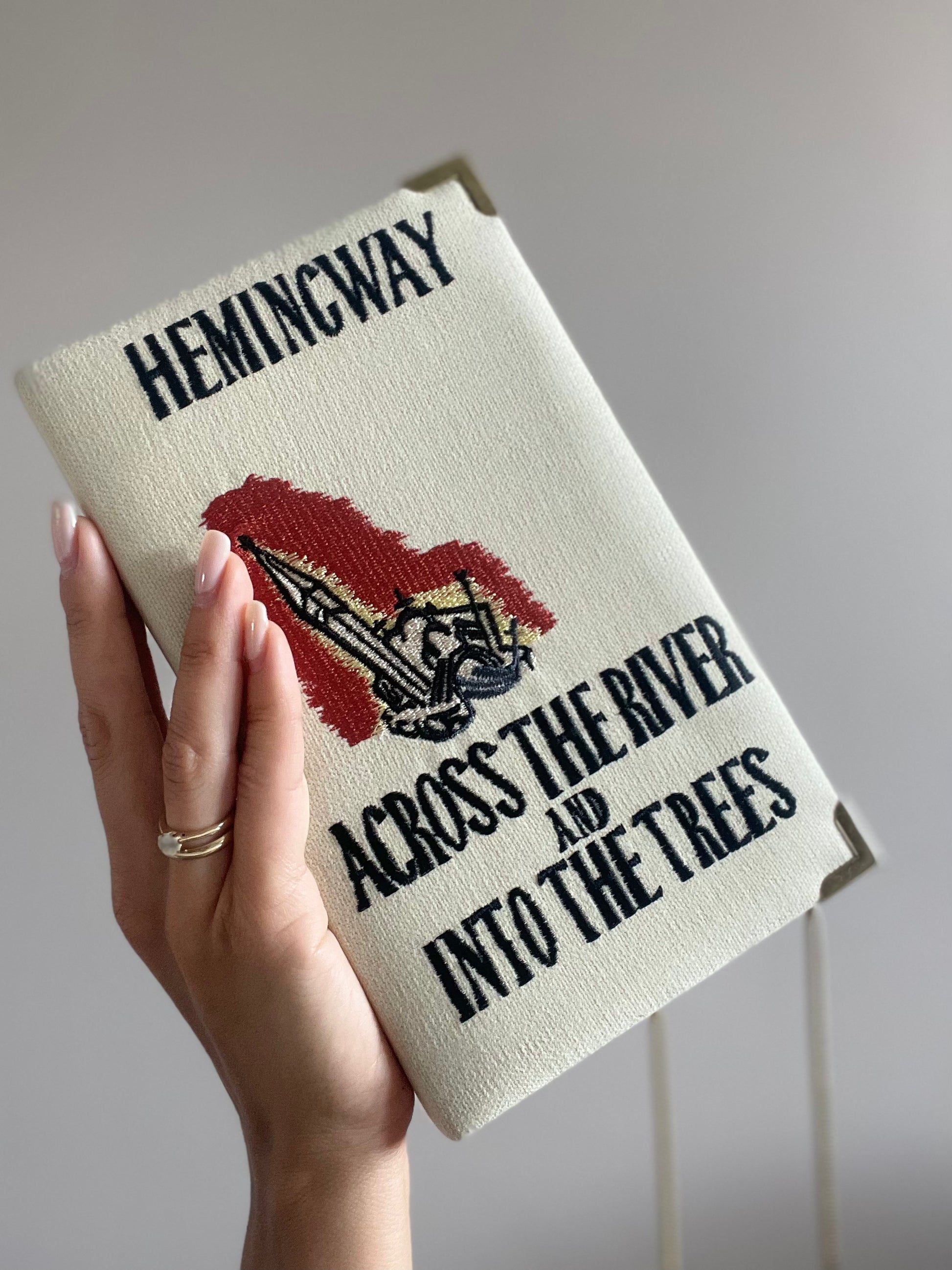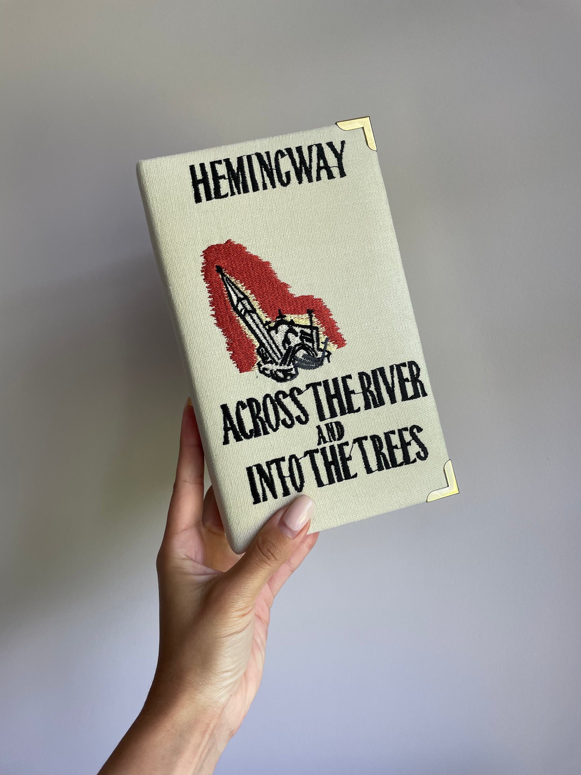 This is a custom listing of embroidered book bag-clutch of Ernest Hemingway. Can be personalized to your preferences.