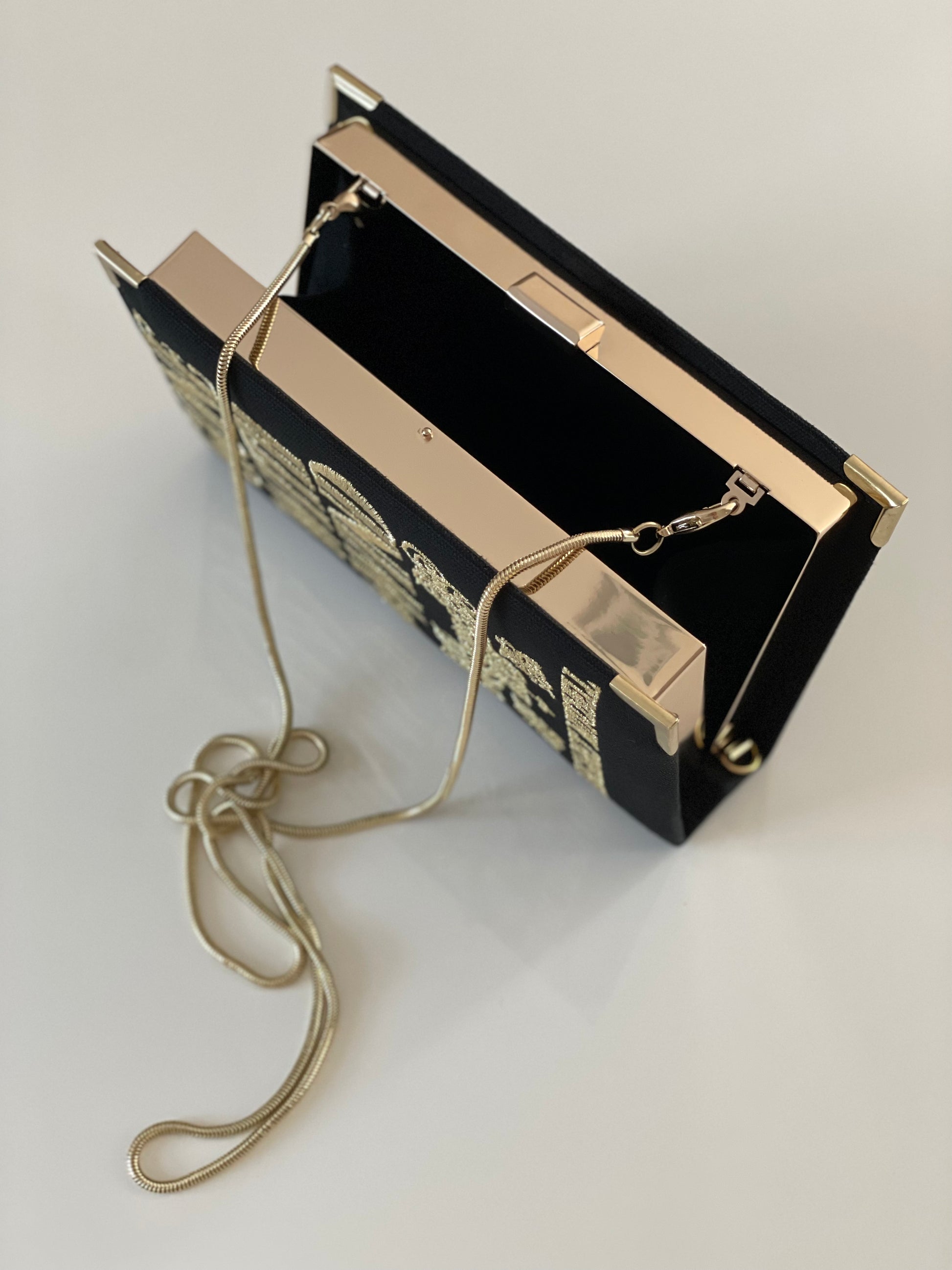 - Gold or Silver (18 x 12 x 4 cm (7.1” x 4.7” x 1.6”) , which goes with detachable tassel and chain