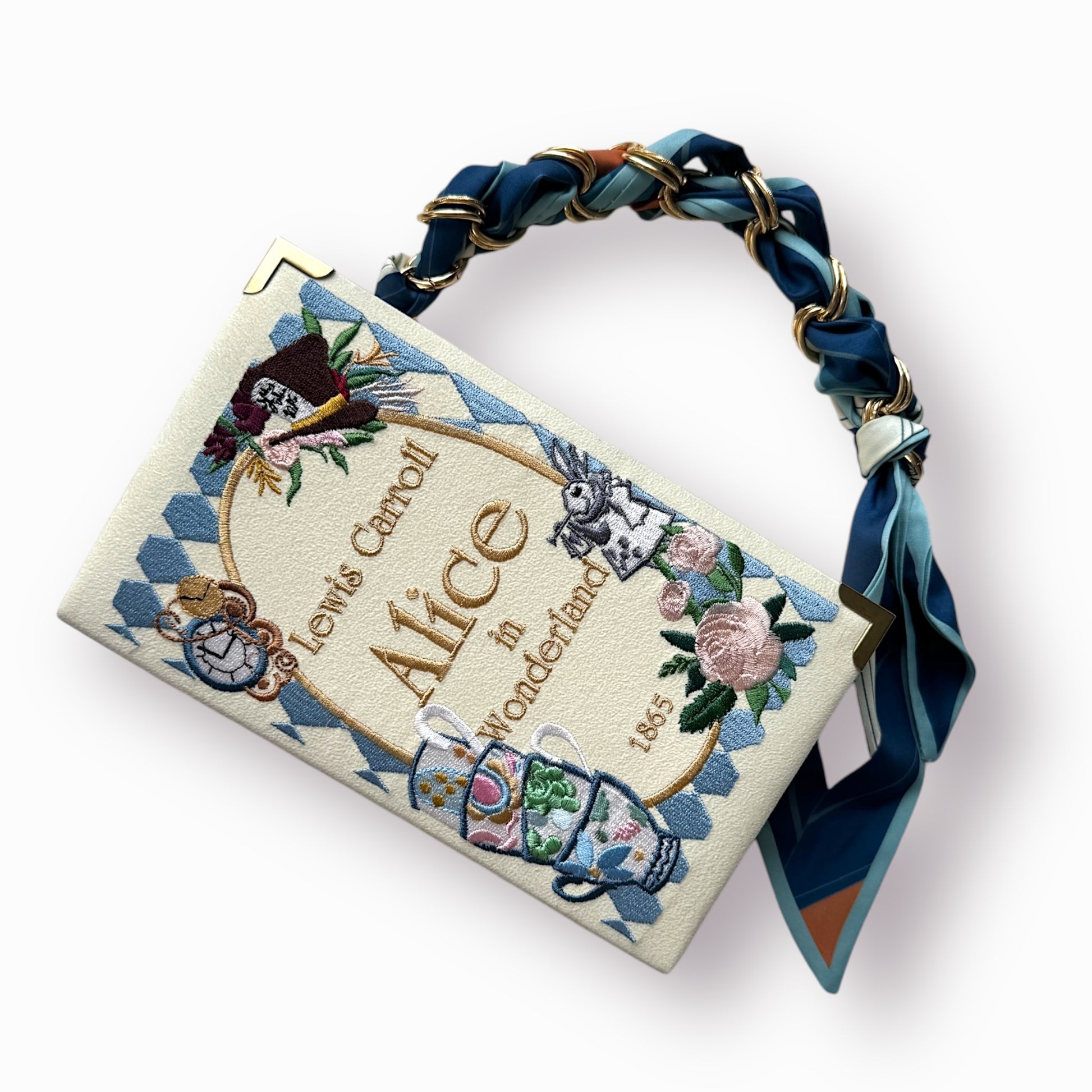 Embroidered book clutch - Museum of Modern Art- blue purse