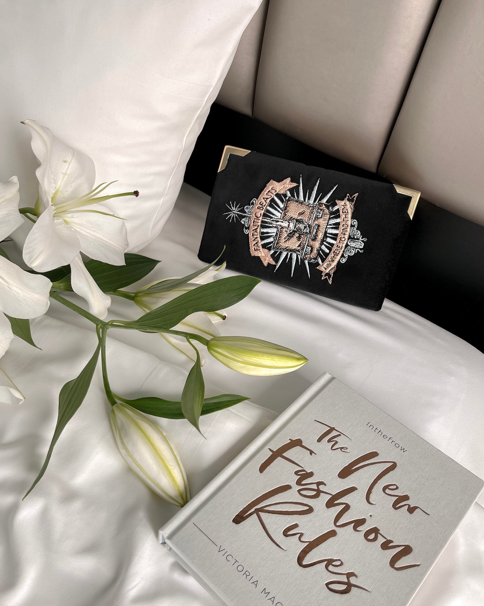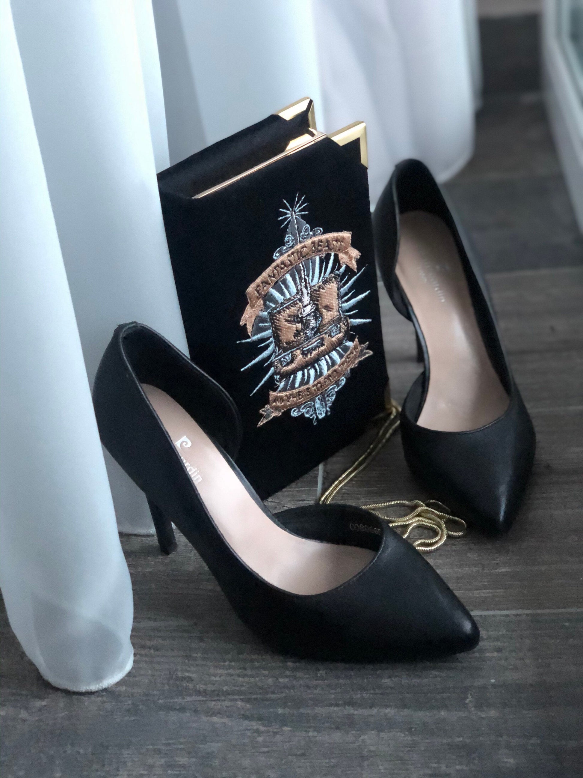 Custom clutch book - Fantastic Beasts - Black embroidered handbag