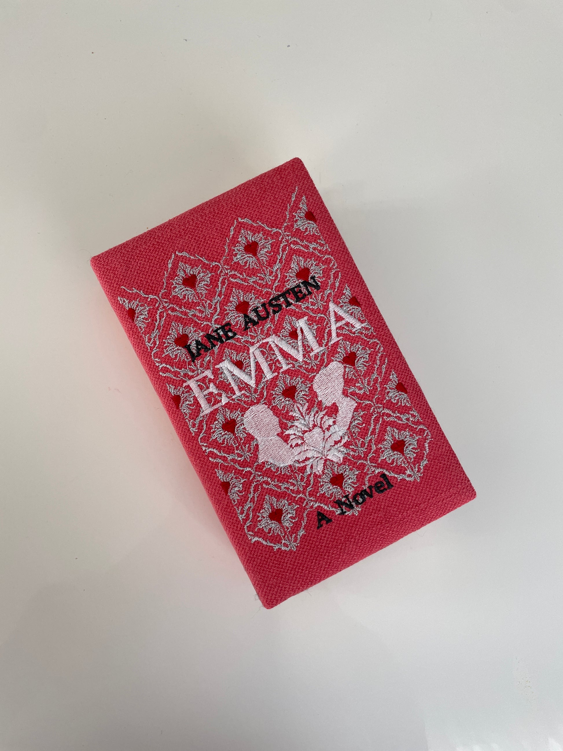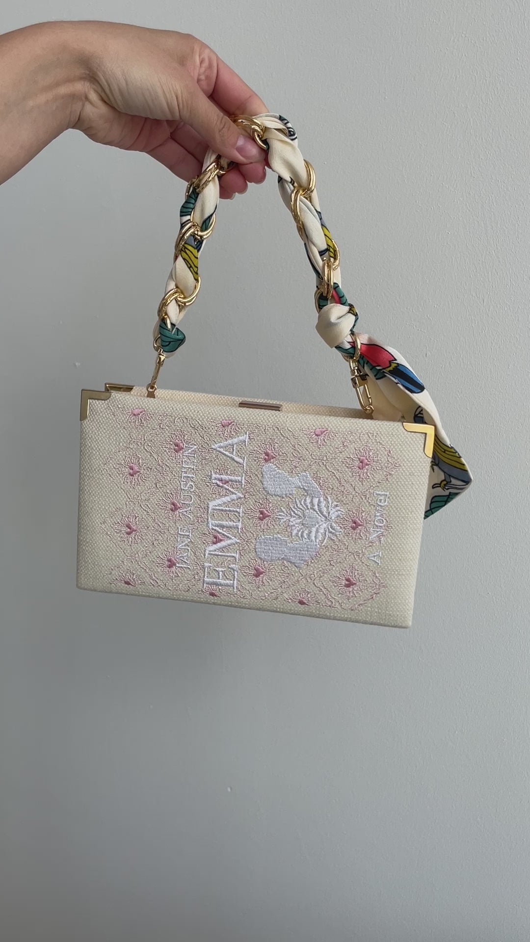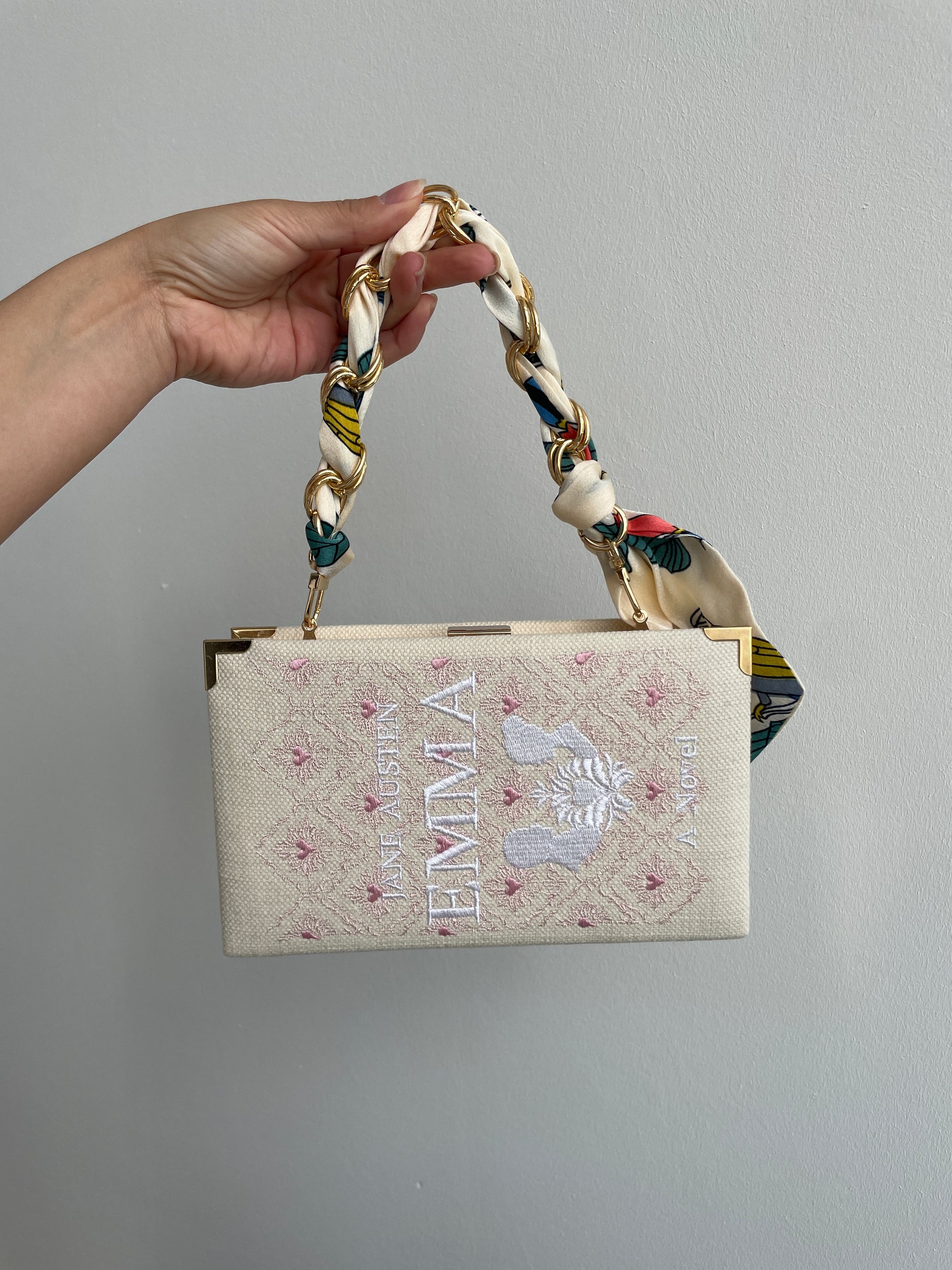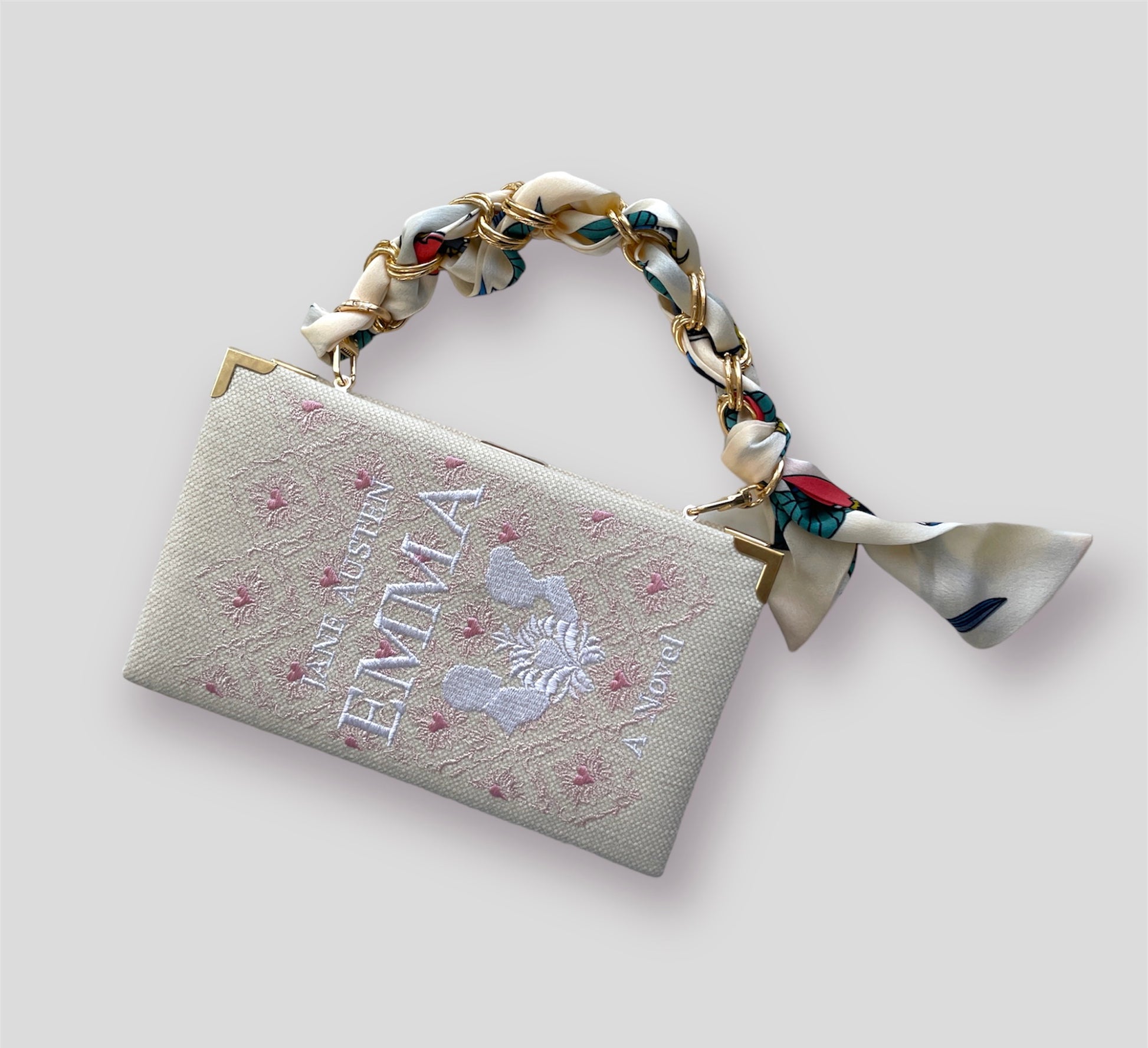 Embroidered book clutch Emma, novelty bag, crossbody purse