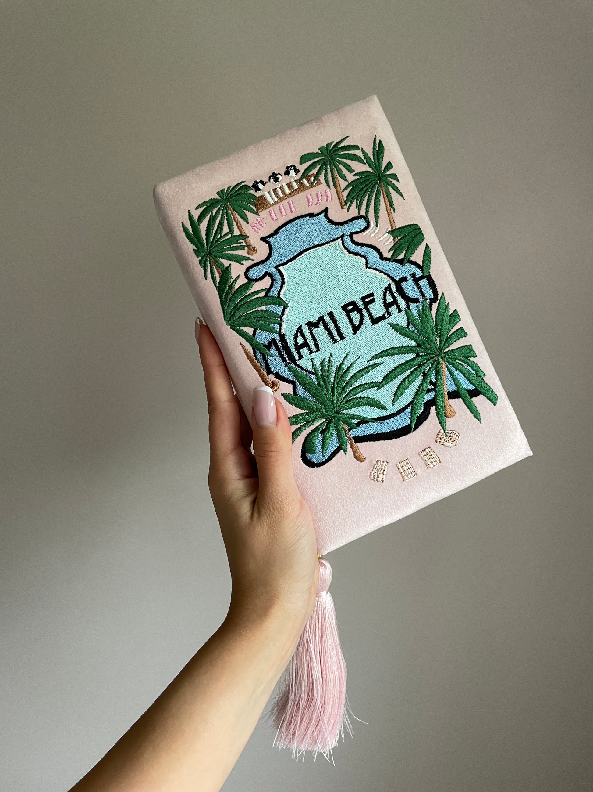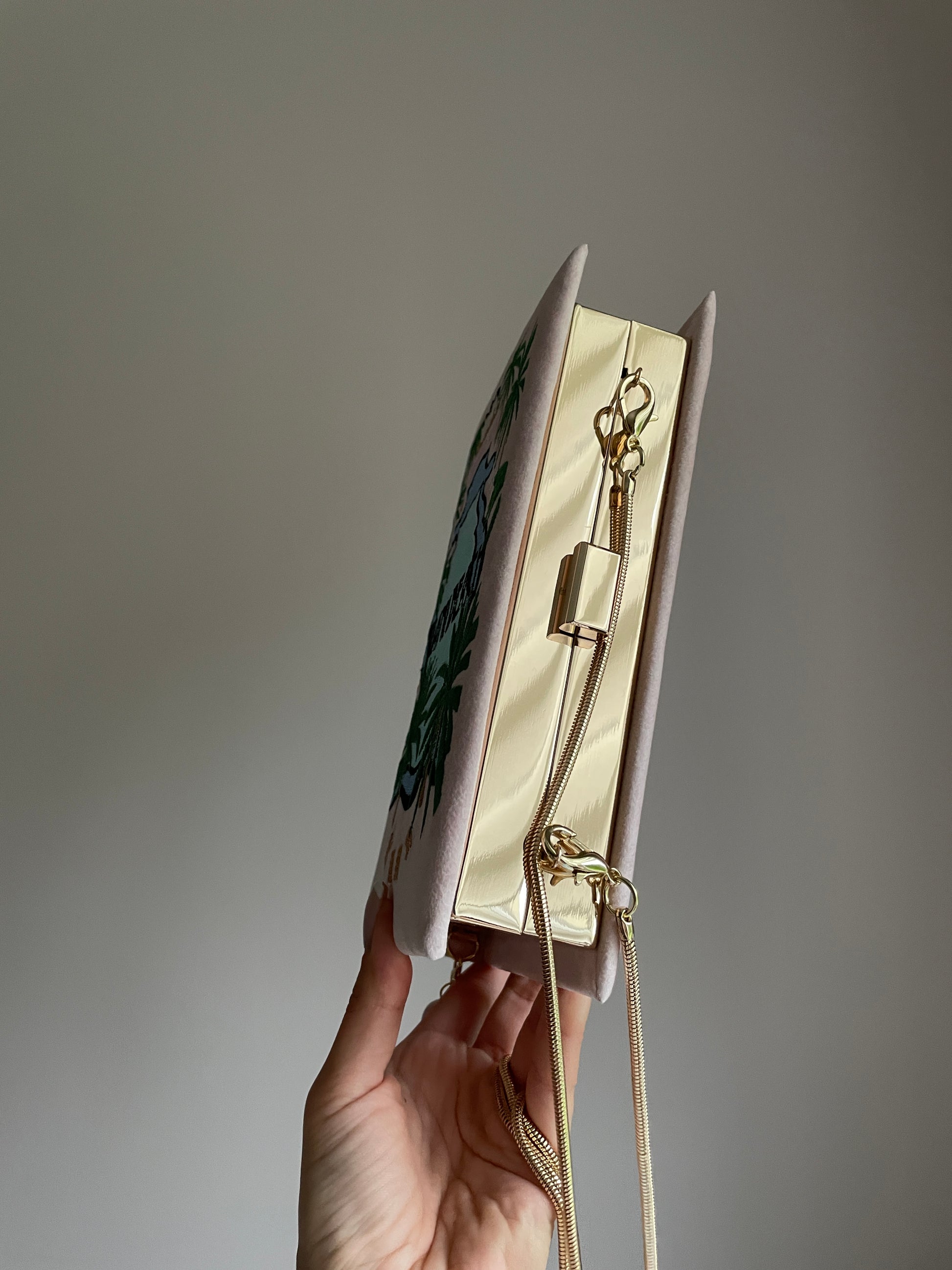 Embroidered book clutch - The Sun Also Rises - beige purse
