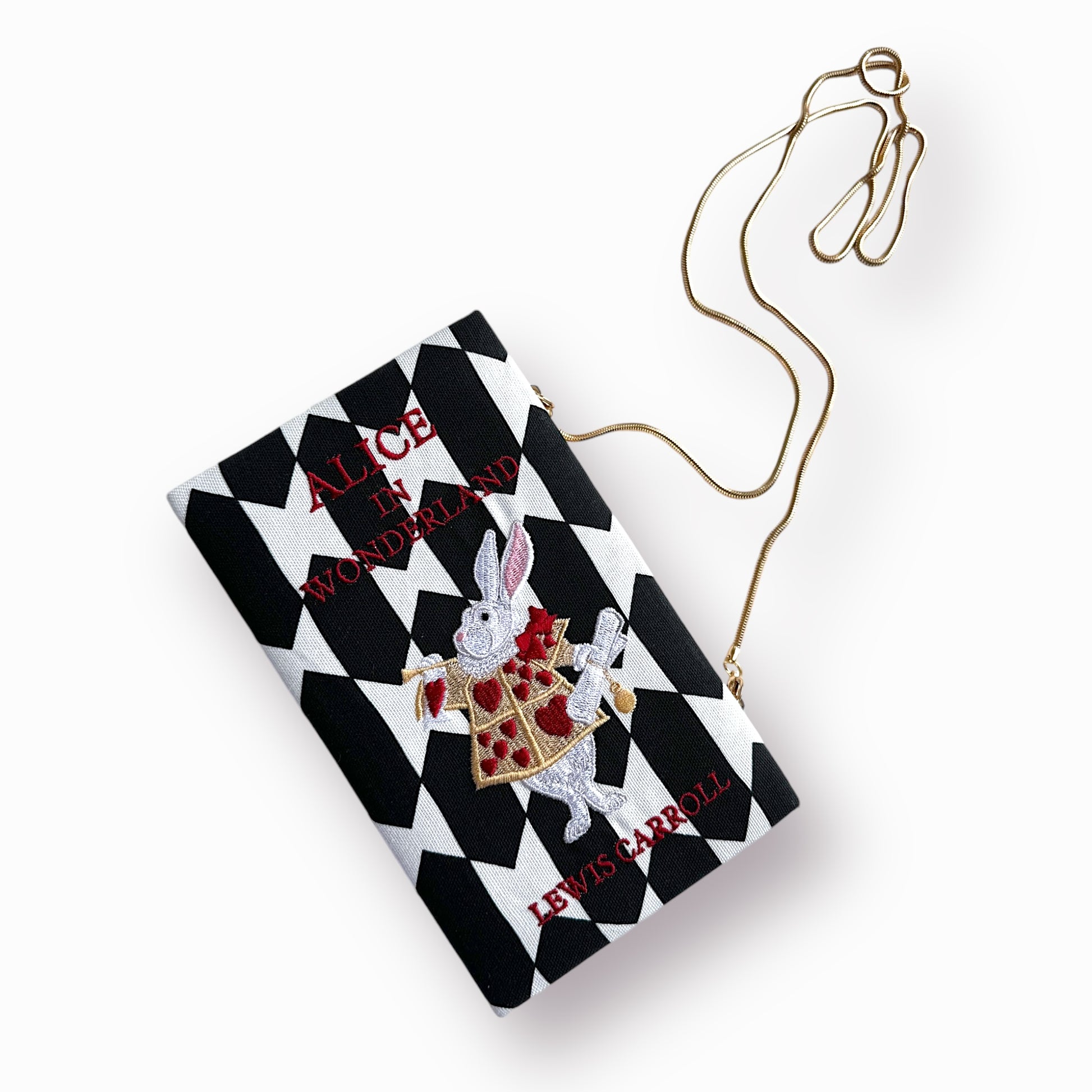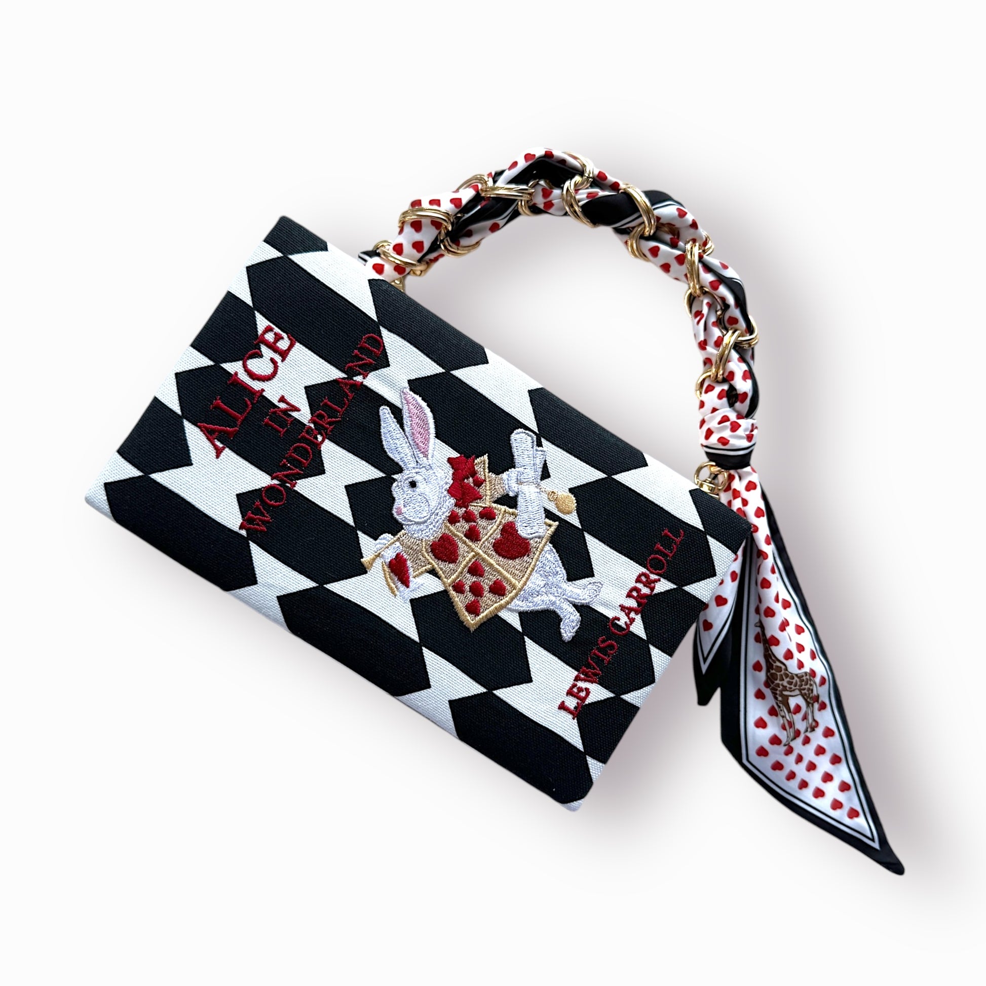 Embroidered Clutch - Alice in Wonderland - black and white purse