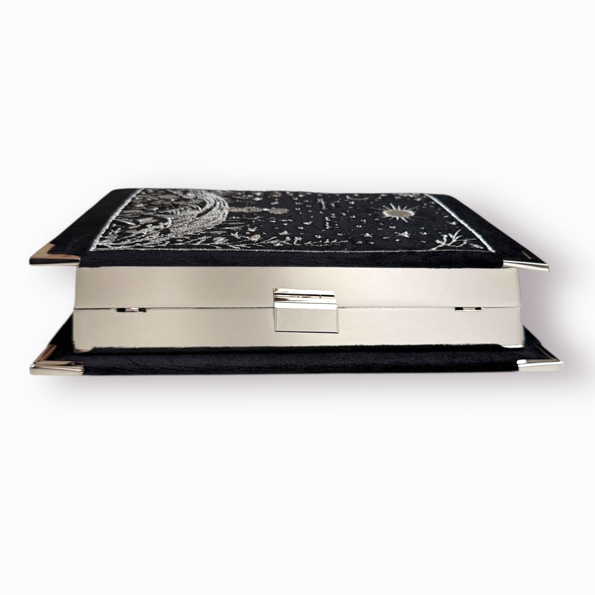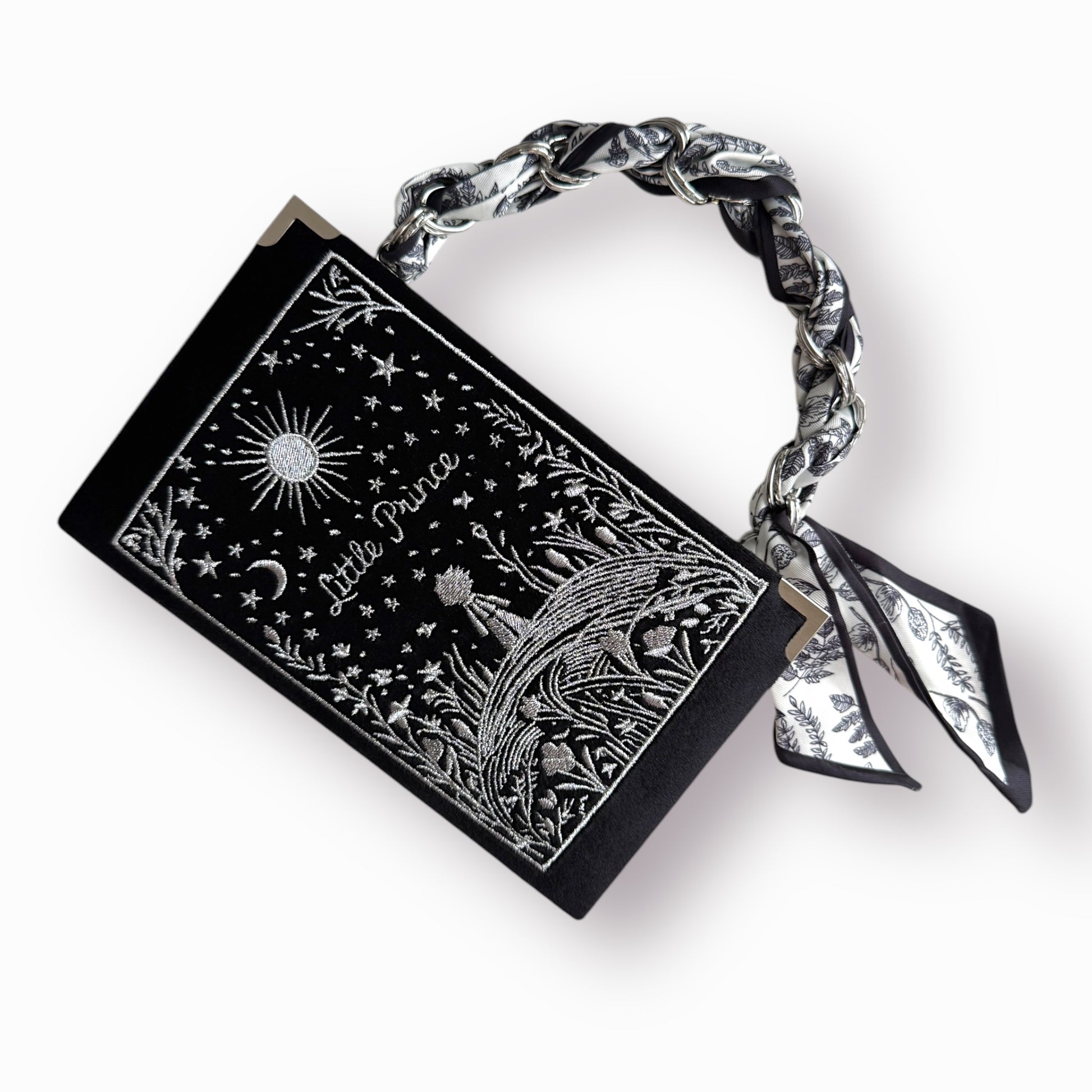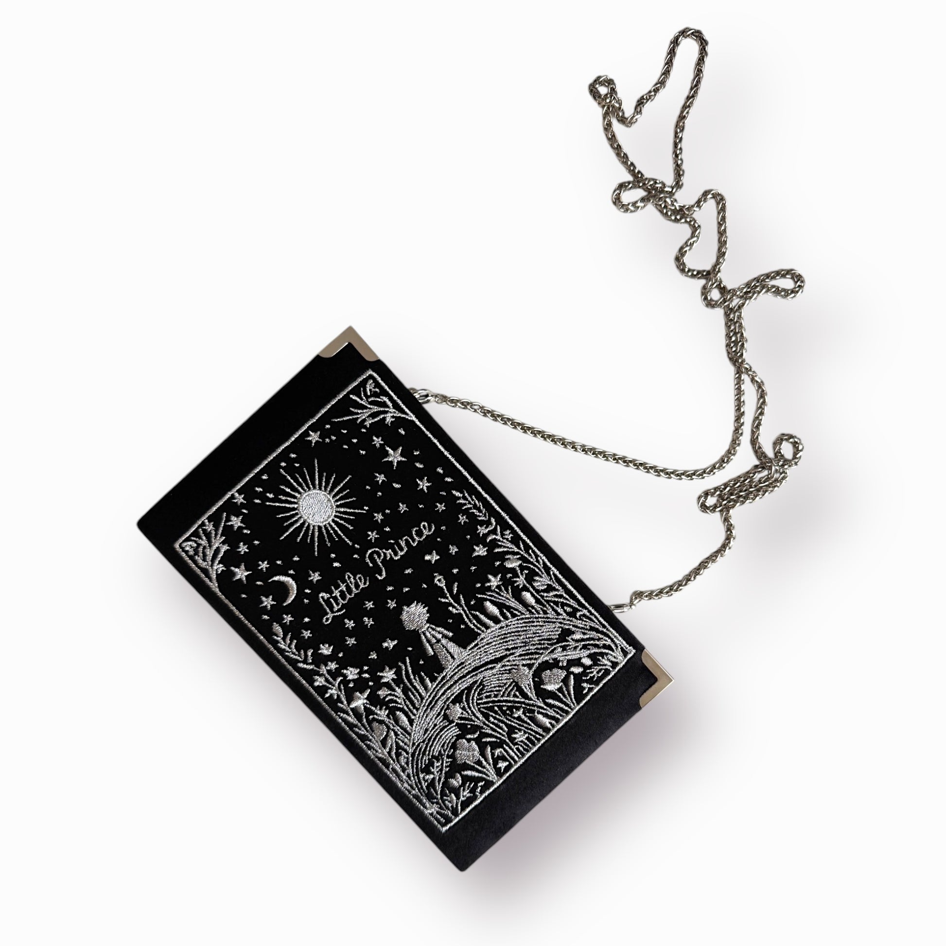 Embroidered Clutch - Little Prince - black purse with silver thread