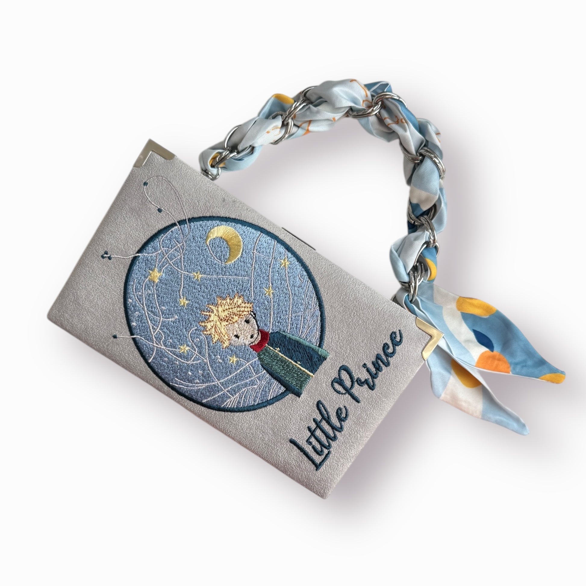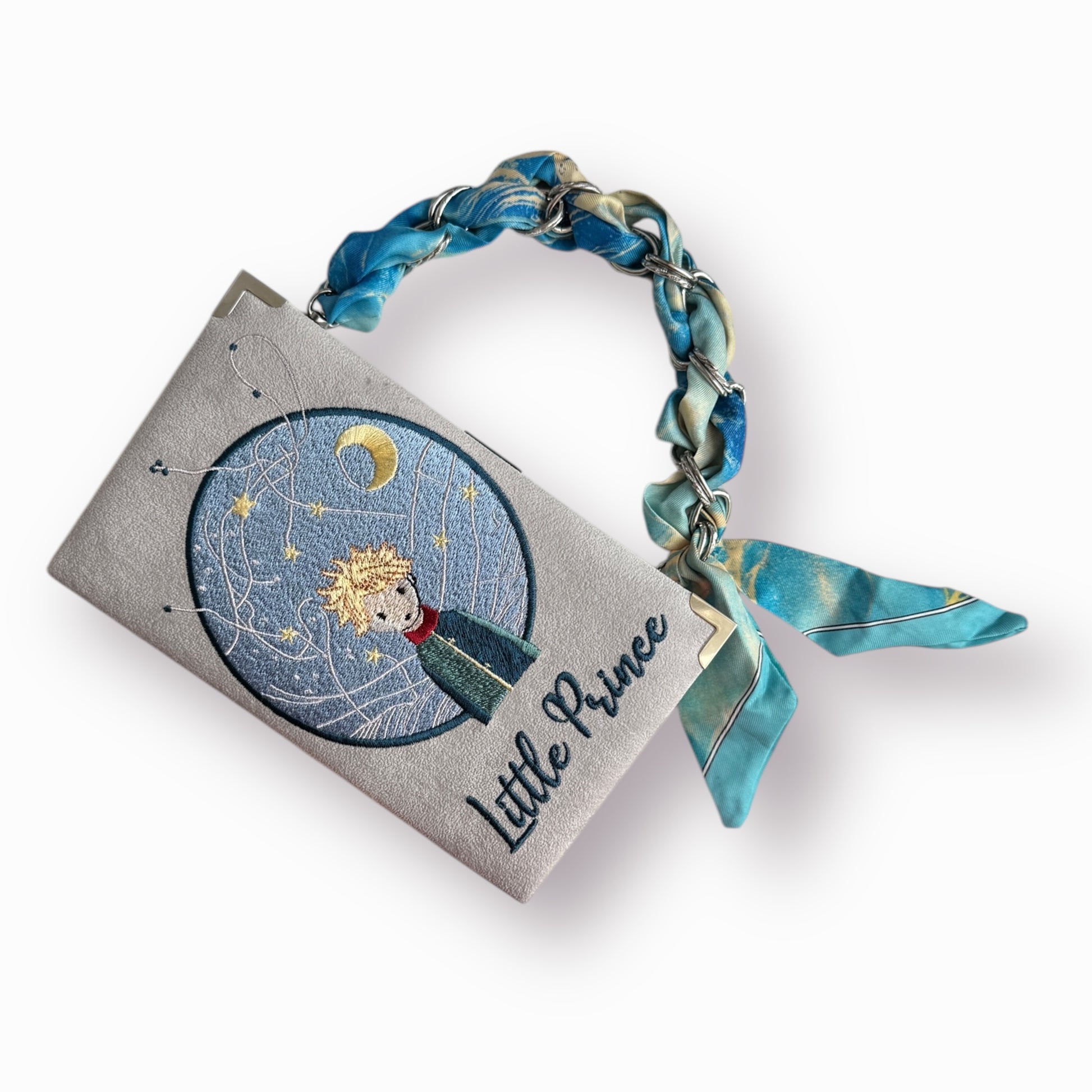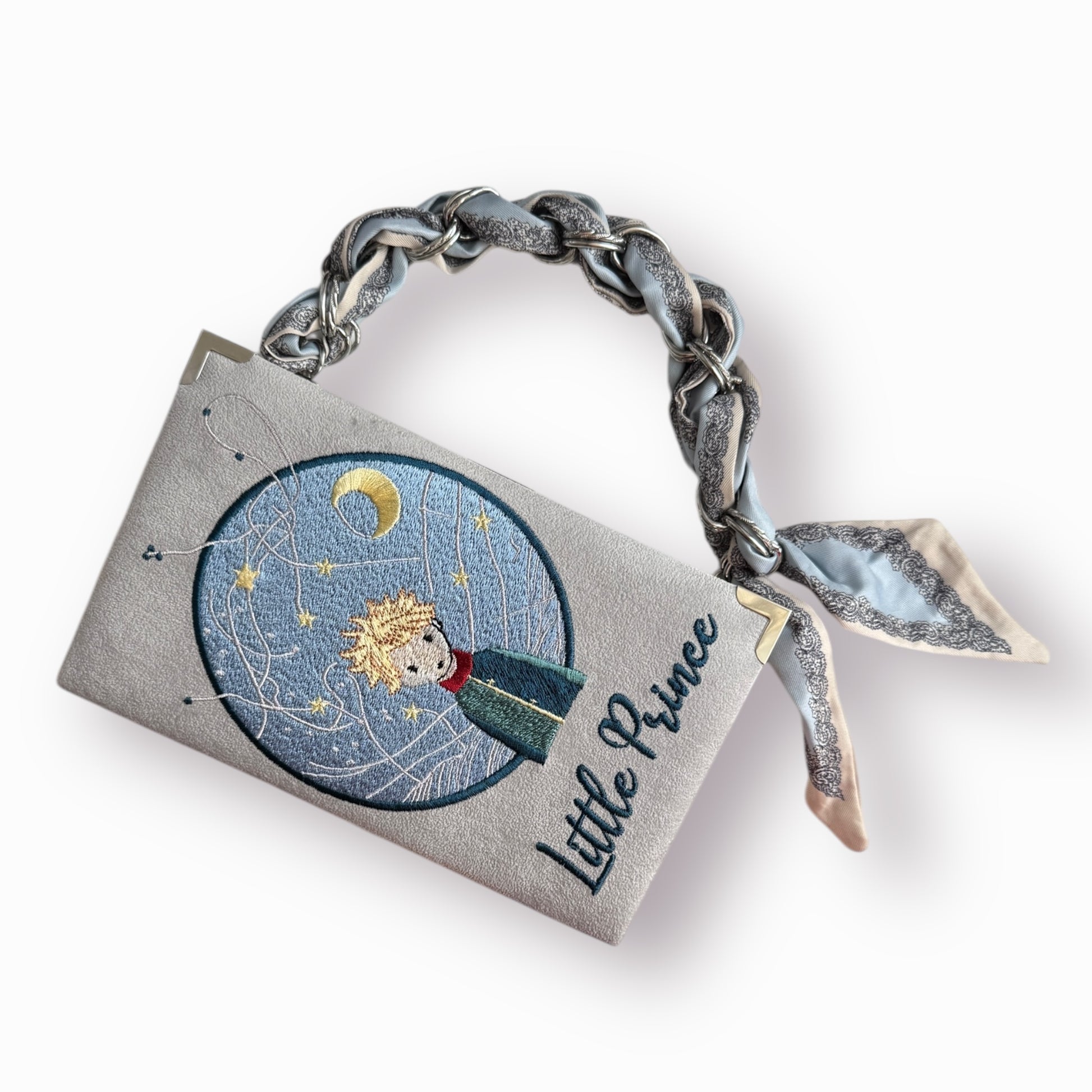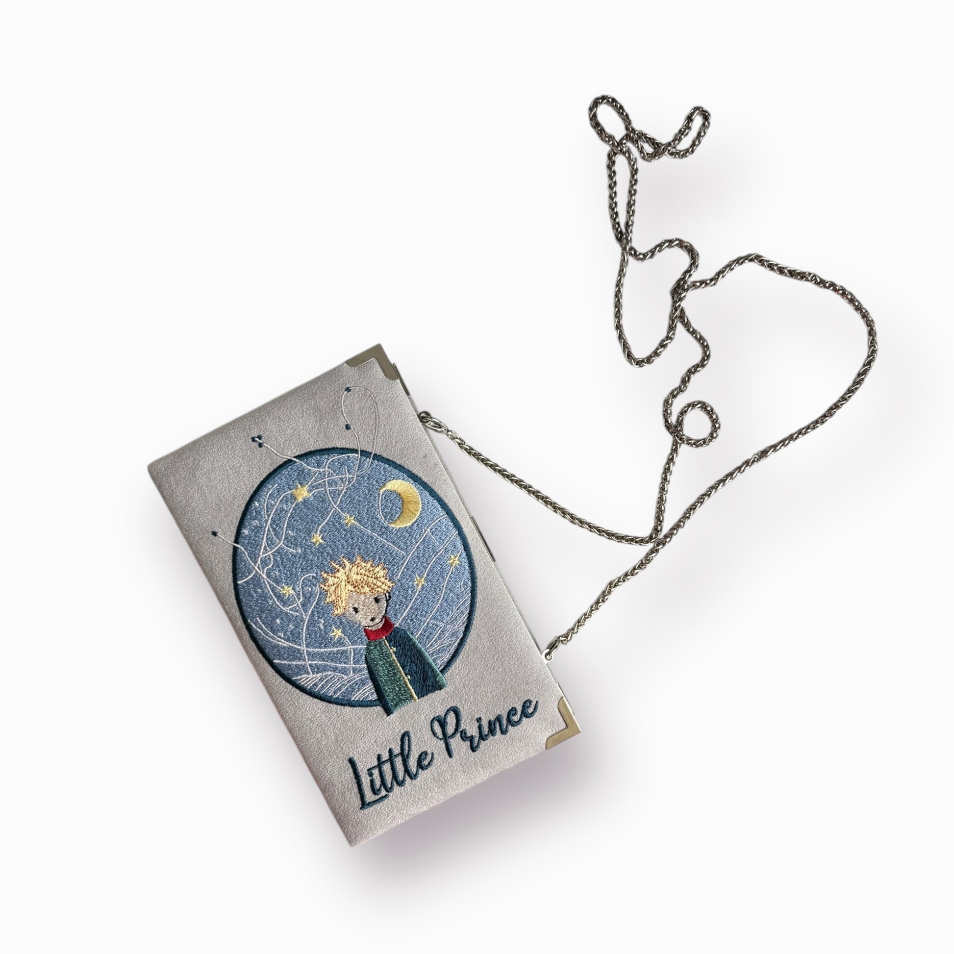 Embroidered Clutch - Little Prince - grey purse