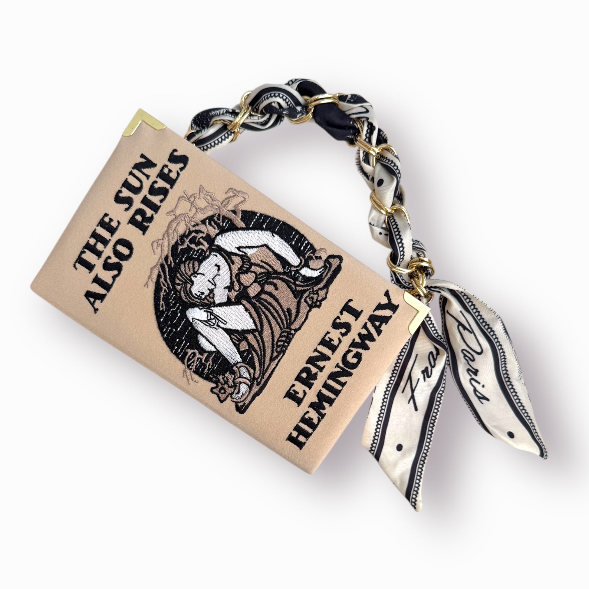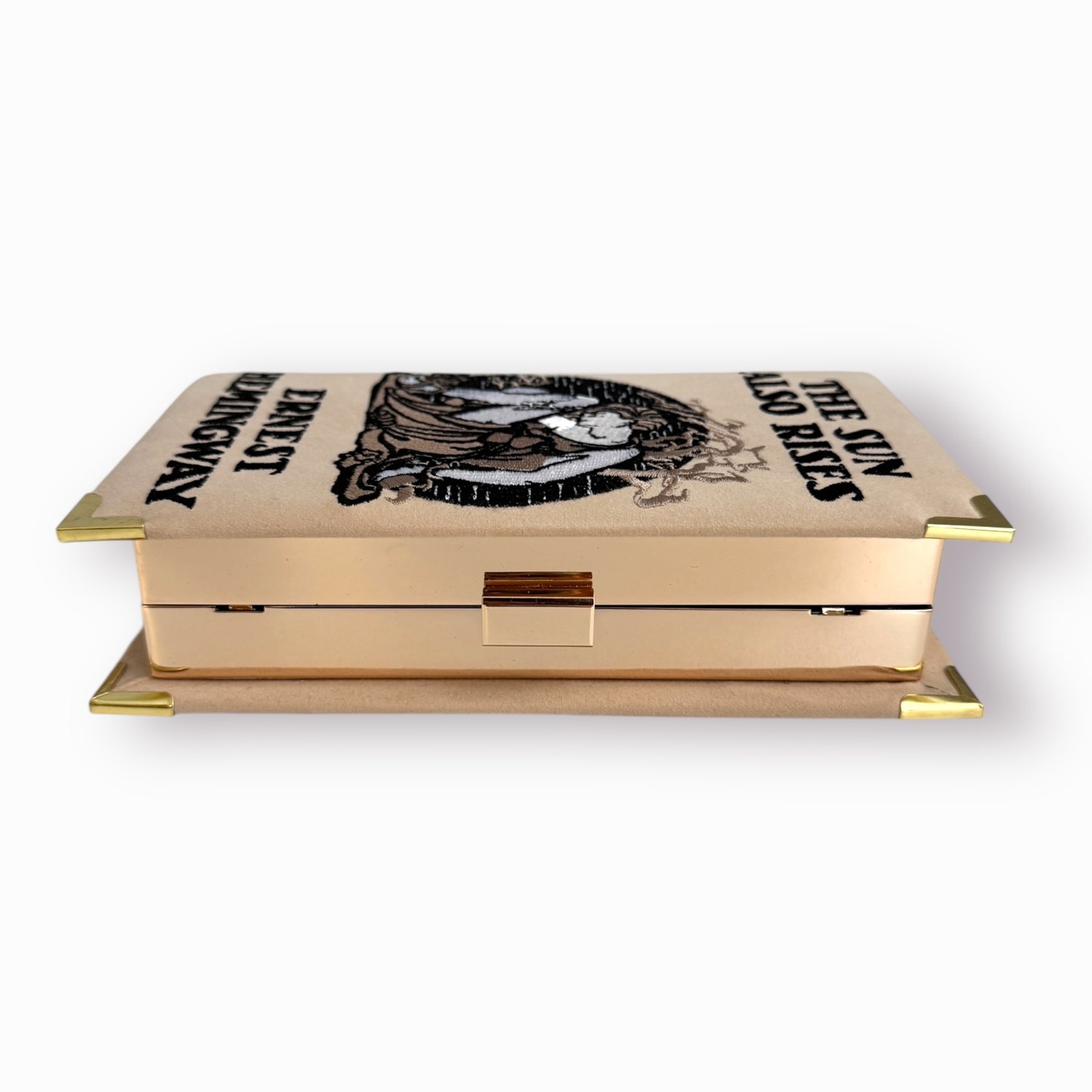 Embroidered book clutch - The Sun Also Rises - beige purse