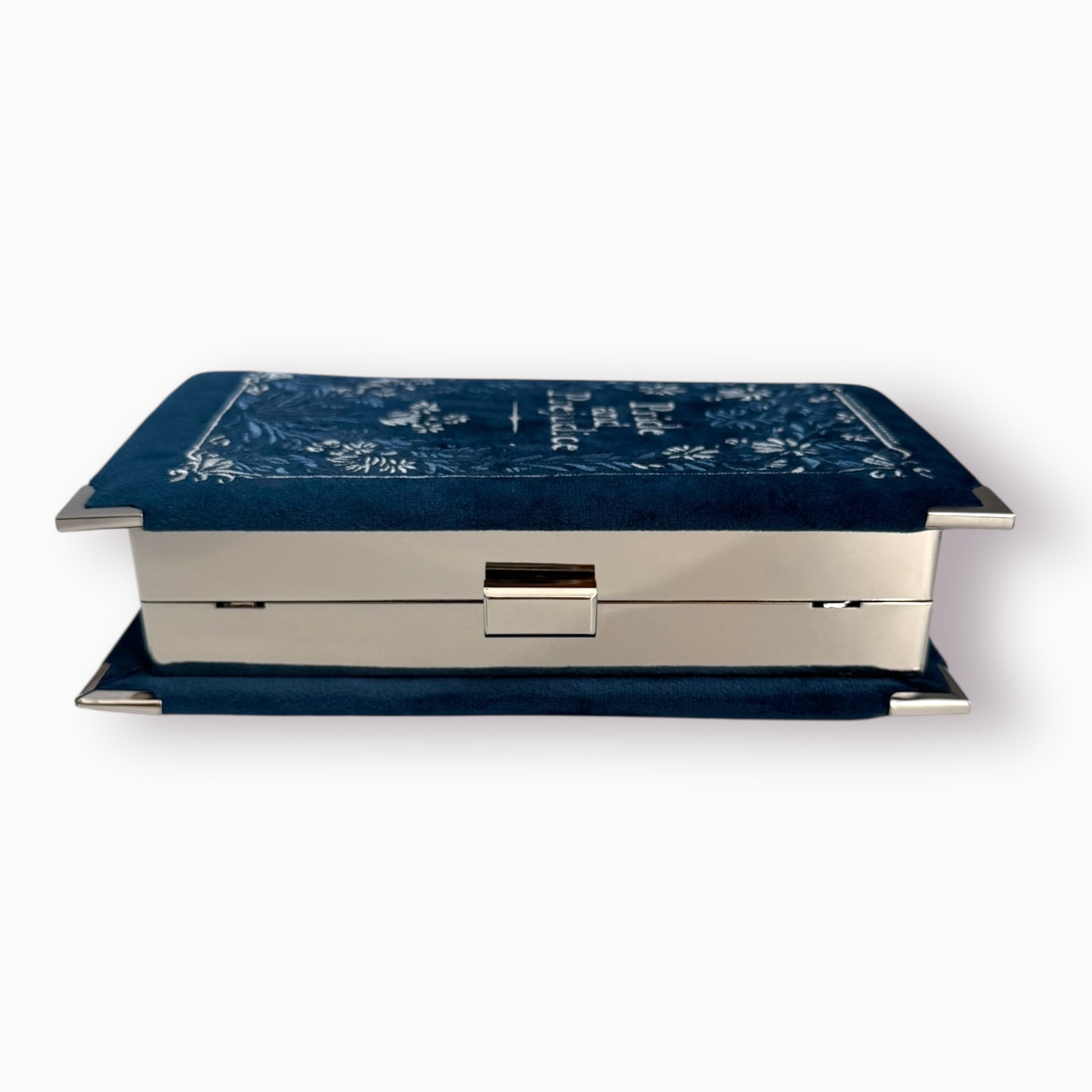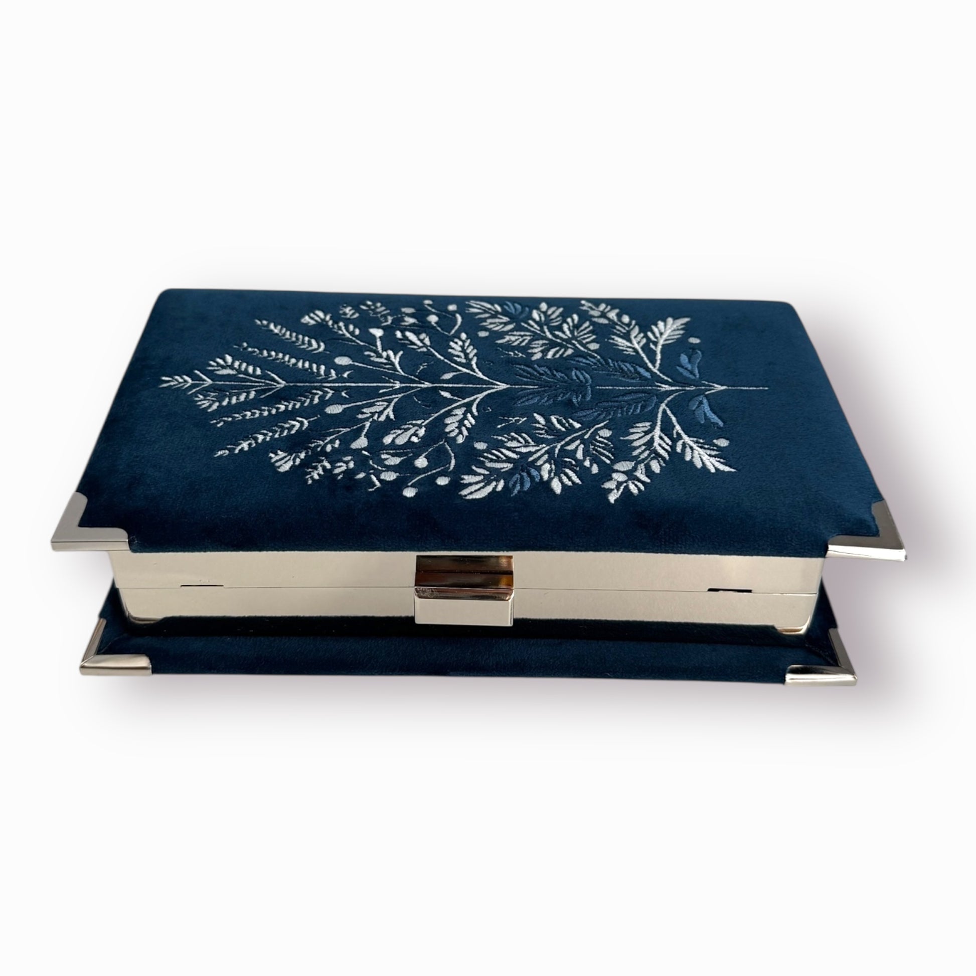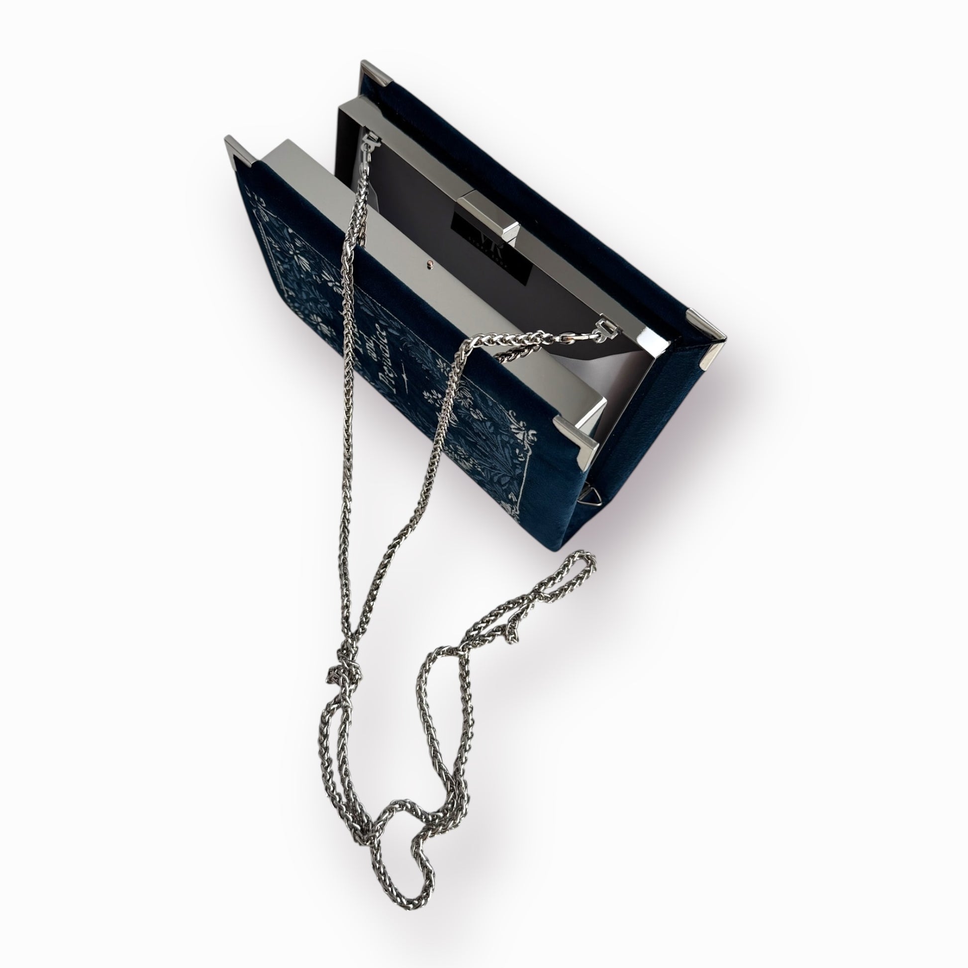 Embroidered clutch - Pride and Prejudice - 2 sided embroidery - navy blue purse